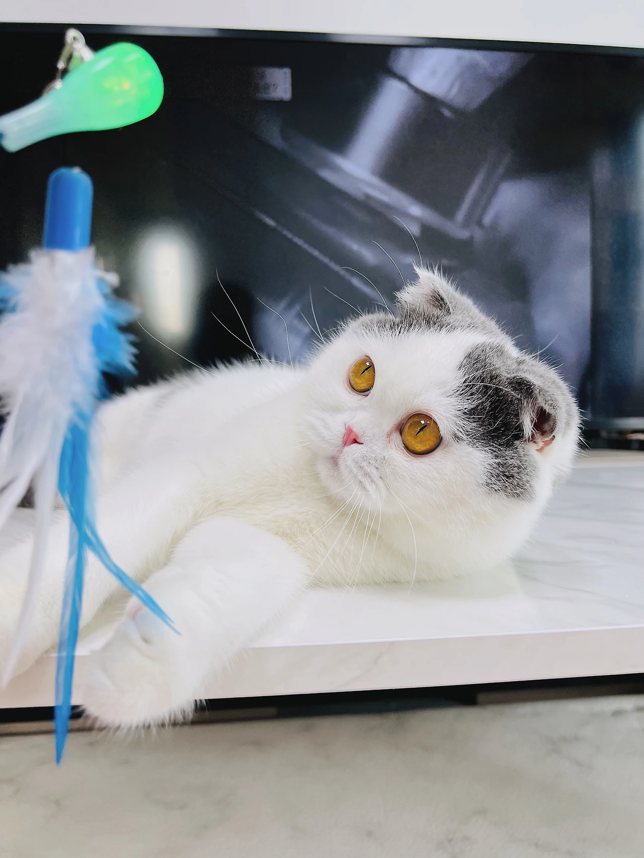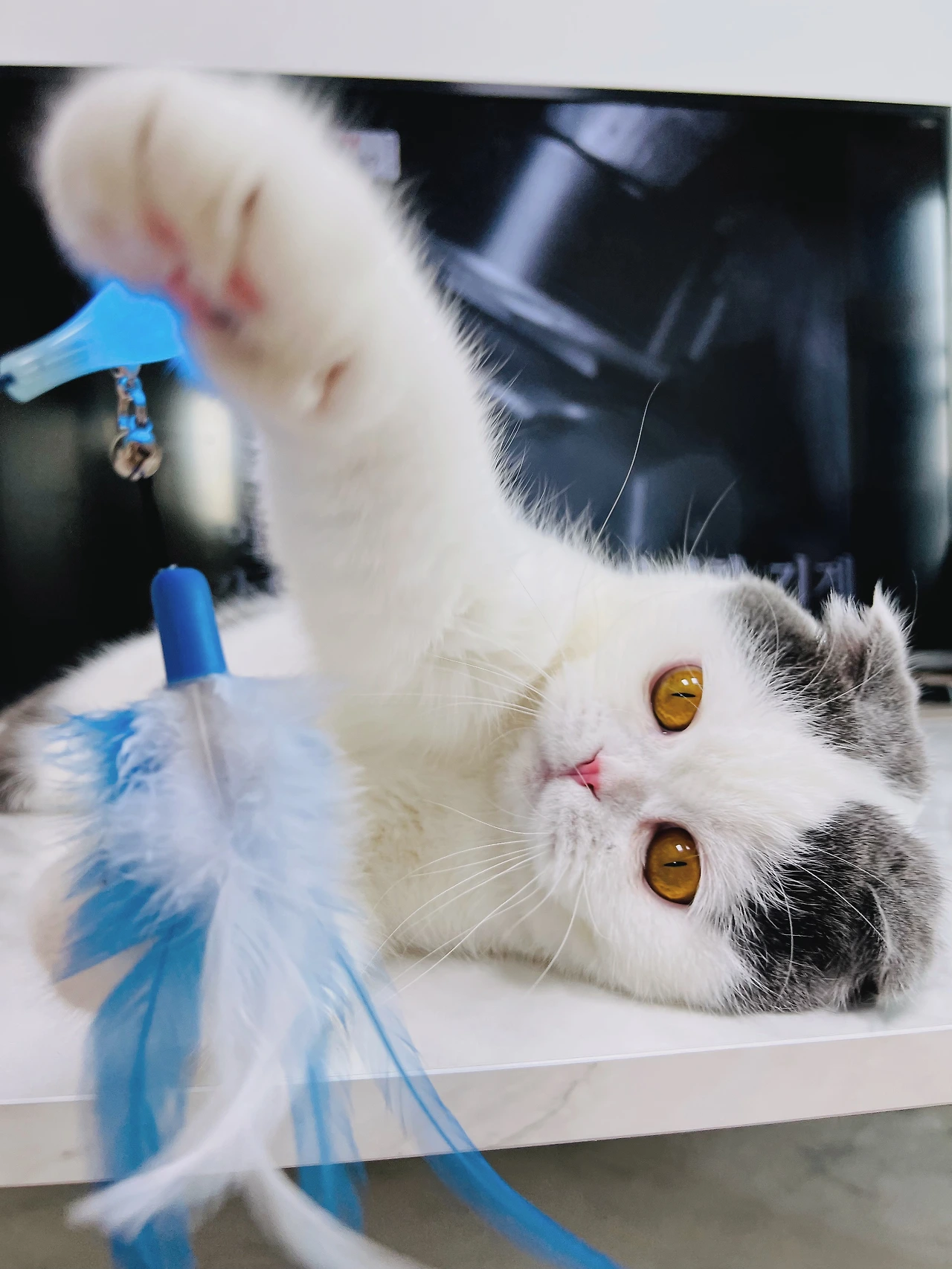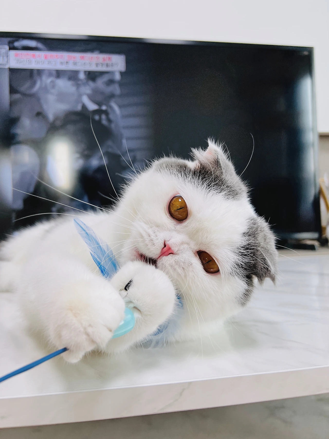 망고는 티비를 볼 때면 꼭 테이블 위에 올라와 놀아달라고 시위를 한다
