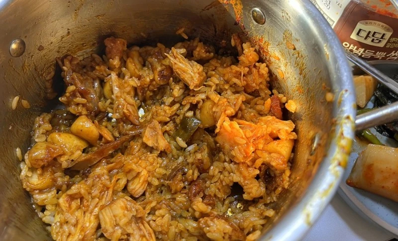 간단히 남은 양념에 밥을 볶으면 되는 것인데도