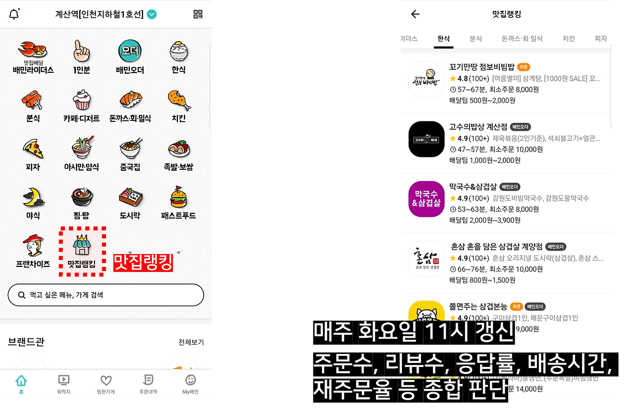 배달의 민족은 이미 맛집랭킹이라는 제도를 오래전부터 활용하고 있었다.