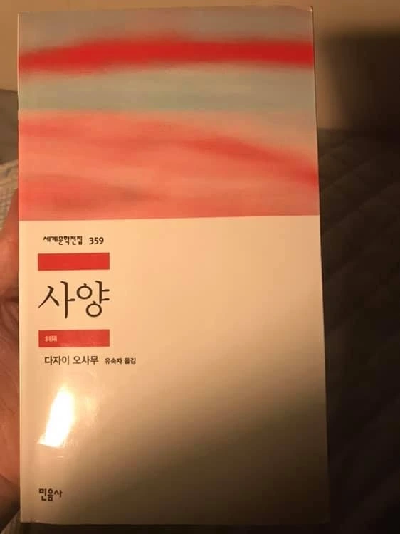 아, 이런 이야기를 하려던 게 아니었다. 책모임을 끝내고 서점으로 가는 걸음이 은근히 설렌다는 말을 하려고 했다. 수백 수천 권의 책 앞에 서서 ‘이 책은 좀 어렵다. 저 책은 좀 통속적이다.’라며 나대는 게 즐겁다는 얘길 하려던 거였다. 깔끔한 검은색 표지를 쓰는 출판사의 클래식과 하얀색 표지를 고수하는 출판사의 클래식 사이를 오가며 번역에 관해 이러쿵저러쿵 떠들어 대는 것 자체가 재밌다고 말하려던 참이었다. 어느 책을 다음 읽기 후보에 넣고 뺄지를 고민하는 게 어렵지만, 그 어려움이 참 좋다는 얘기를 하려던 거였다. 독자들이 고르기 쉽게 가판대에 깔아놓은 유명 고전들을 하나씩 지워가는 게 슬쩍 뿌듯하다고 말하려고 했다. 『사양』은 늘 가판대에 있던 책 중 하나였고, 『인간실격』 이후 모임에서 두 번째로 읽는 다자이 오사무의 책이었다.