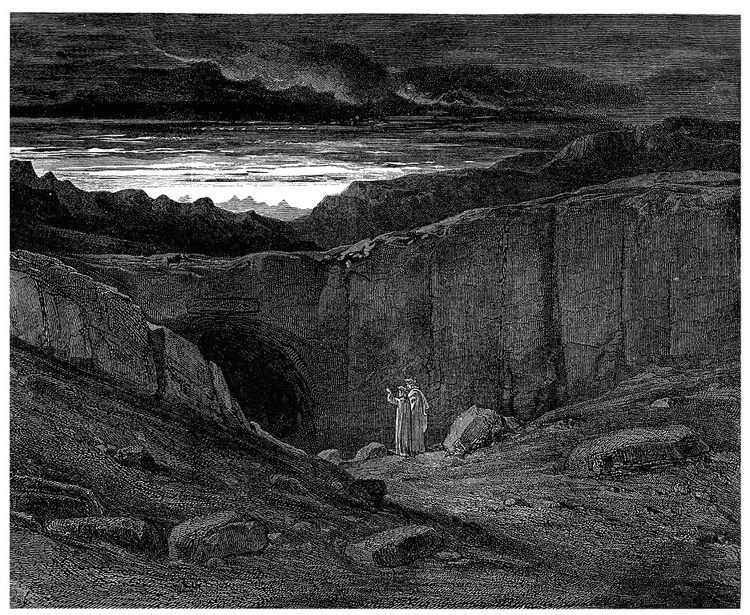 단테는 시인 베르길리우스와 그들 여정의 첫 시작인 지옥의 문 앞에 서는데, 문 앞에는 다음의 무시무시한 글귀가 쓰여있다. 온갖 빛이 침묵하는 그 곳, 지옥에 대해 이보다 완벽한 서술이 있을 수 있을까?