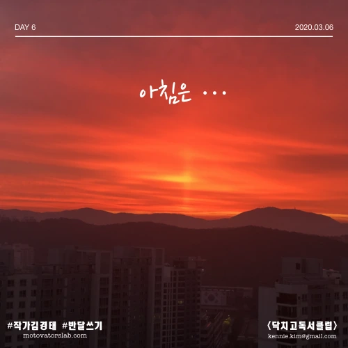 이렇듯 새벽에 커다란 틈을 만들어 사용하다 보니 내 삶에 서두름이 없어졌다. 아침 일기를 쓰면서 하루를 기획하다 보니 오늘 할 일을 놓치는 경우가 점차 줄었고, 지금 하고 있는 반달 쓰기 같은 꾸준함을 목표로 추진하는 일에 대한 두려움이 사라졌다. 무엇보다 주변 사람들이 내 꾸준함을 인정하기 시작했다. 동료들에게 "~~한번 해봐야겠다"라고 말하면 해내는 그런 사람이 되었다.