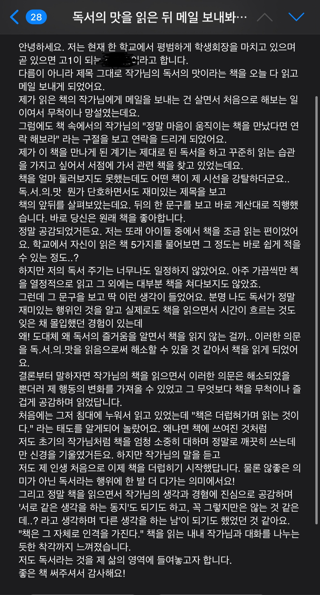 #독서의맛 #독자메일 #선물 #글의힘 #독서습관