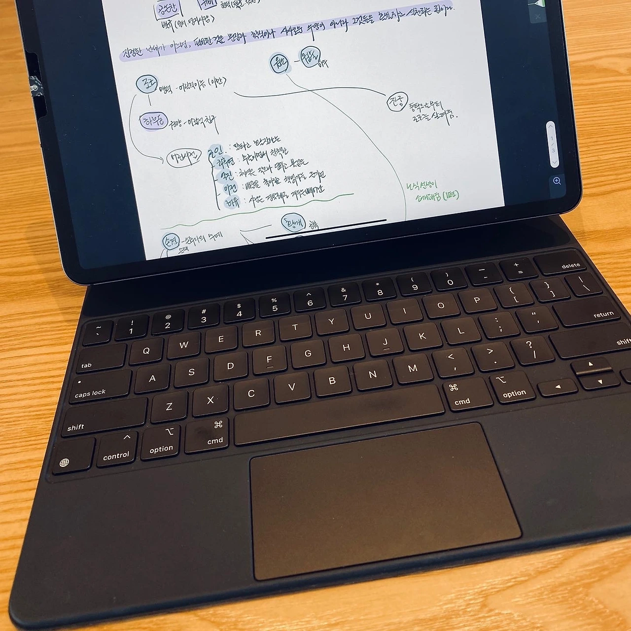 지인께서는 사업가인데 웬만한 사무는 아이패드로 다 처리한다고 정말 좋다며 칭찬 일색이셨다. 특히 내가 사용 중인 #키보드폴리오 를 보시더니 자기도 예전에 이것 쓰셨다며 키감이 나빠서 불편했는데 #매직키보드 를 구매하고서는 버렸다고 하시며 매직 키보드 칭찬을 하셨다. (가격만 아니라면 당장 입양하고 싶은 아이템이지… 사악하게 키보드가 44만 원이라니…)