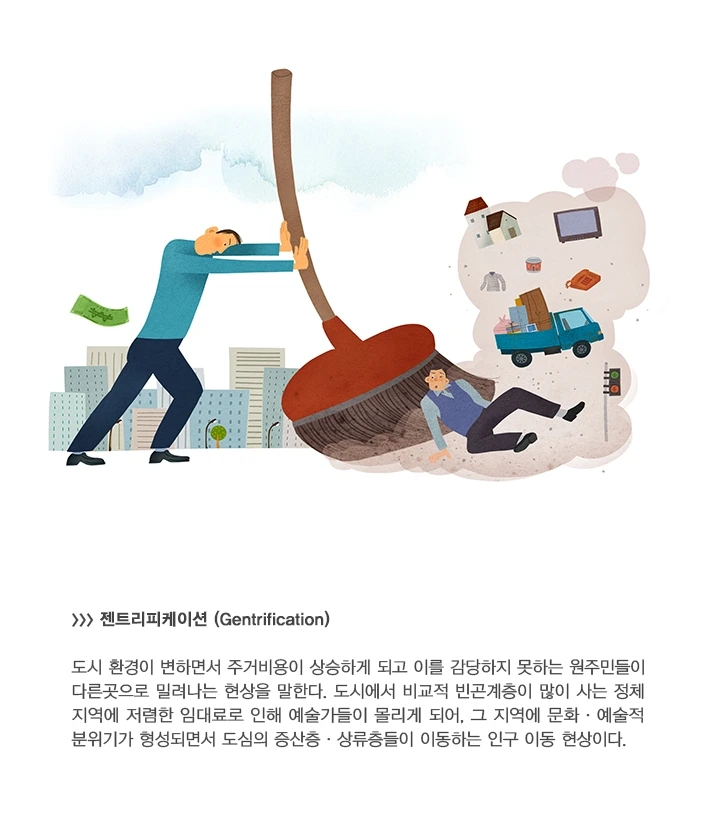 개발 호재가 생기고 땅값이 오르고 집값이 뛰면서 새로운 사람들이 유입되고 거주하는 사람들의 삶의 질이 높아진다. 젠트리피케이션이라는 신조어가 생겼듯 기존에 거주하던 사람들은 자꾸만 외곽으로 쫓겨나고 변화된 수준에 걸맞은 자금력을 갖춘 가게와 상인들이 빈 곳을 메운다. 이렇듯 주거와 생활에 대한 불안이 우리를 둘러싸고 있지만 그래도 다들 내 집 근처에 개발호재가 나기를 꿈꾸고, 그 덕분에 내 재산이 불어나기를 원한다. 그런데 이런 개발이라는 현대화의 이면에 소중한 추억들이 하나 둘 녹아내리고 있다. 허름했던 맛집이 새 건물에 단장하고 재오픈을 하면 이상하게 예전의 그 맛이 나지 않는 것 같은 느낌이 든다면 그건 나만의 생각일까?