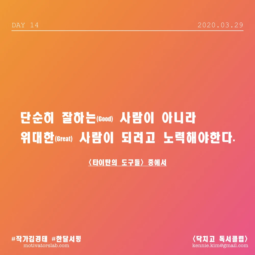 수차례 얘기했지만 <타이탄의 도구들>은 어느 한 페이지 버릴 것이 없는 책이다. 책 절반 이상을 볼펜으로 밑줄을 그었다면 믿을까?