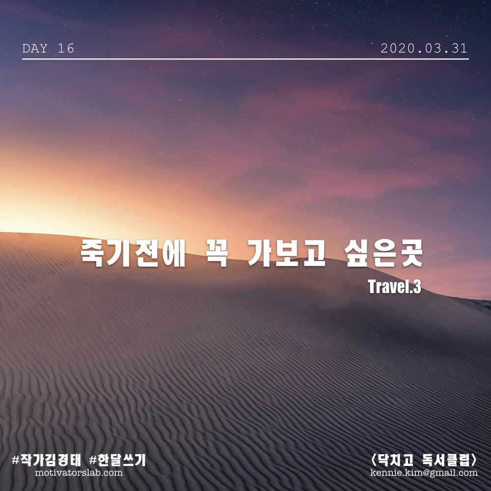 여러분들도 여행을 떠올리면 꼭 가보고 싶은 곳이 있으시죠? 저도 새해가 되면 버킷리스트를 업데이트 하는데 그 때마다 꼭 가보고 싶은 곳을 몇군데 가하곤 합니다. 오늘은 그 중에서 여러분들에게 소개하고 싶은 곳 3군데가 있어서 그걸 써보려고 합니다.