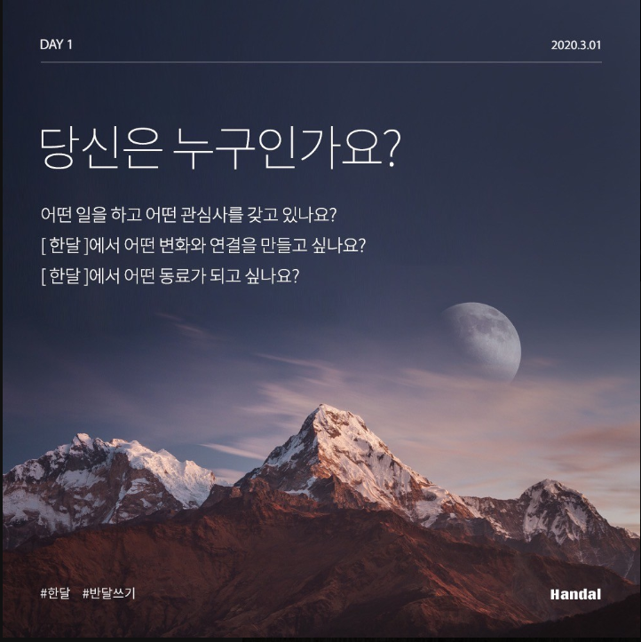 그리고 지난 금요일 연결을 통해 한 달 쓰기 이전의 웜업 과정인 <반달 쓰기>에 합류하게 되었습니다. 커뮤니티의 제목에서도 알 수 있듯 이 모임은 반달 간 매일 하나의 글을 게시하는 것이 목표입니다. 물론 한 달 쓰기는 한 달 동안 매일 쓰게 되겠죠. 글을 쓰는 꾸준함에 있어서는 제법 자신이 있는 터라 도전을 시작했습니다.