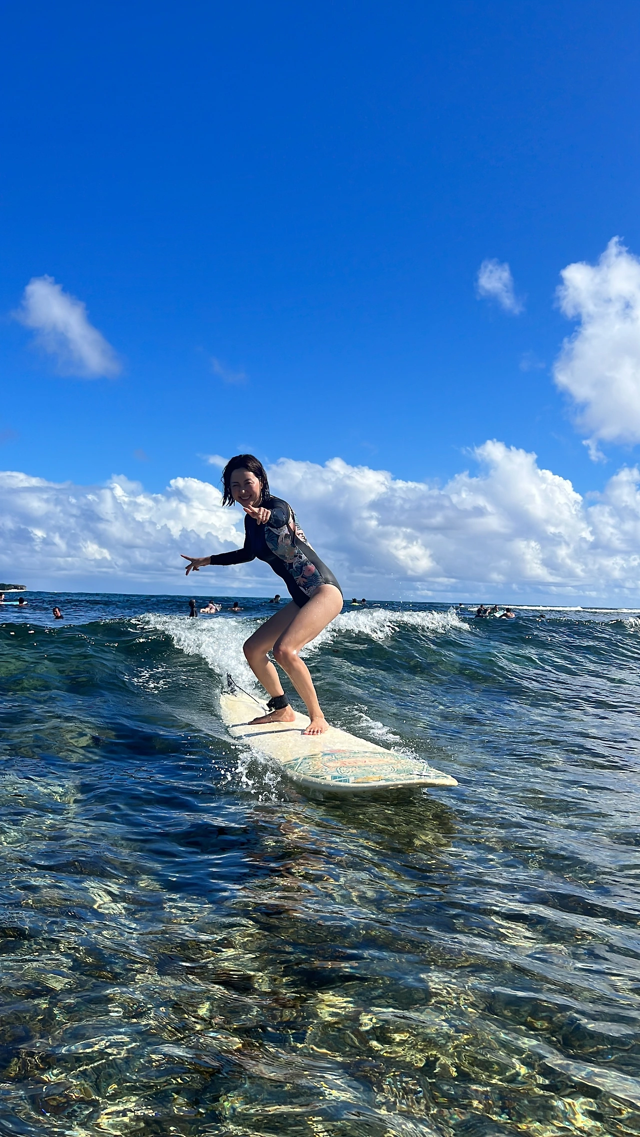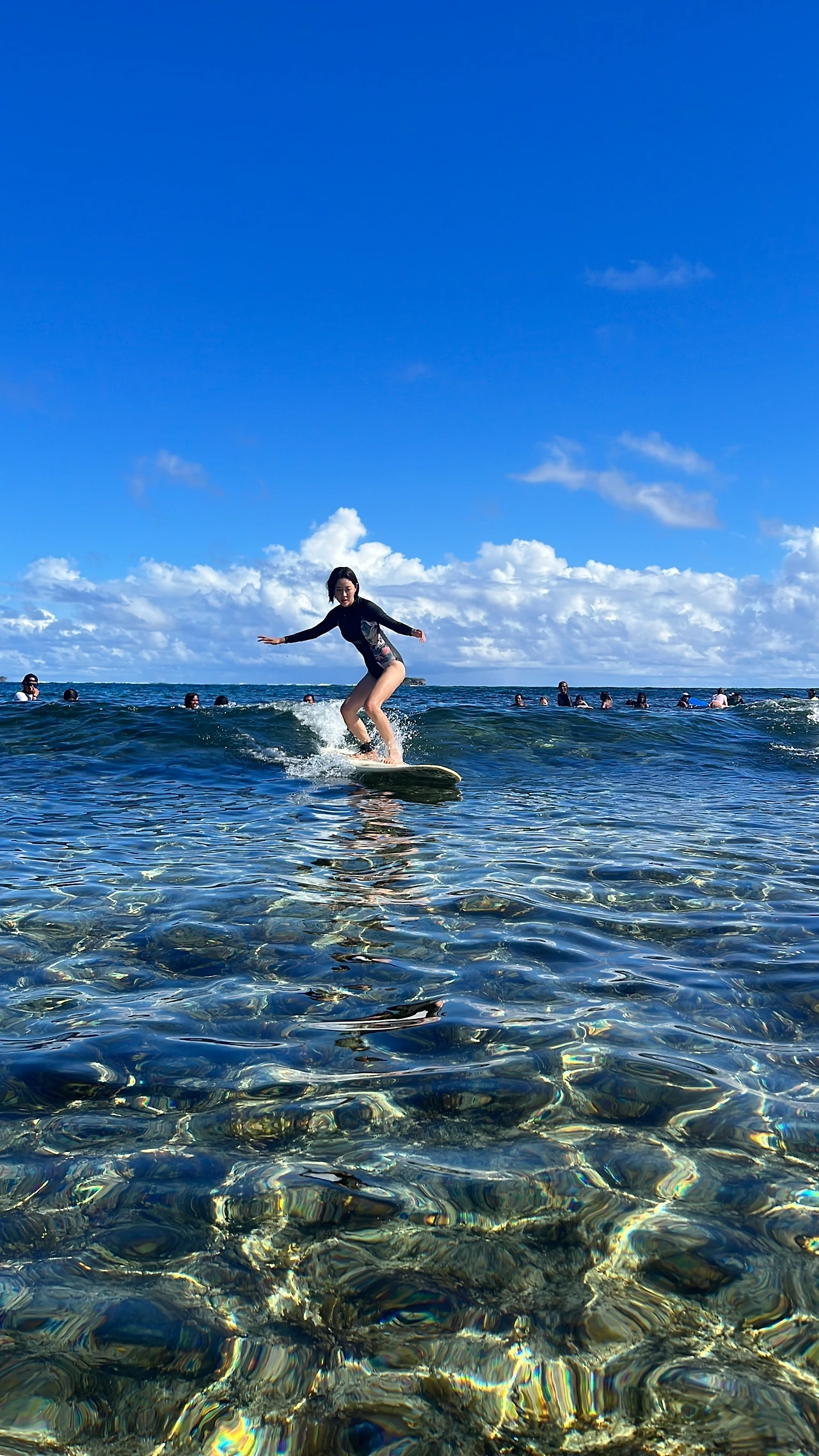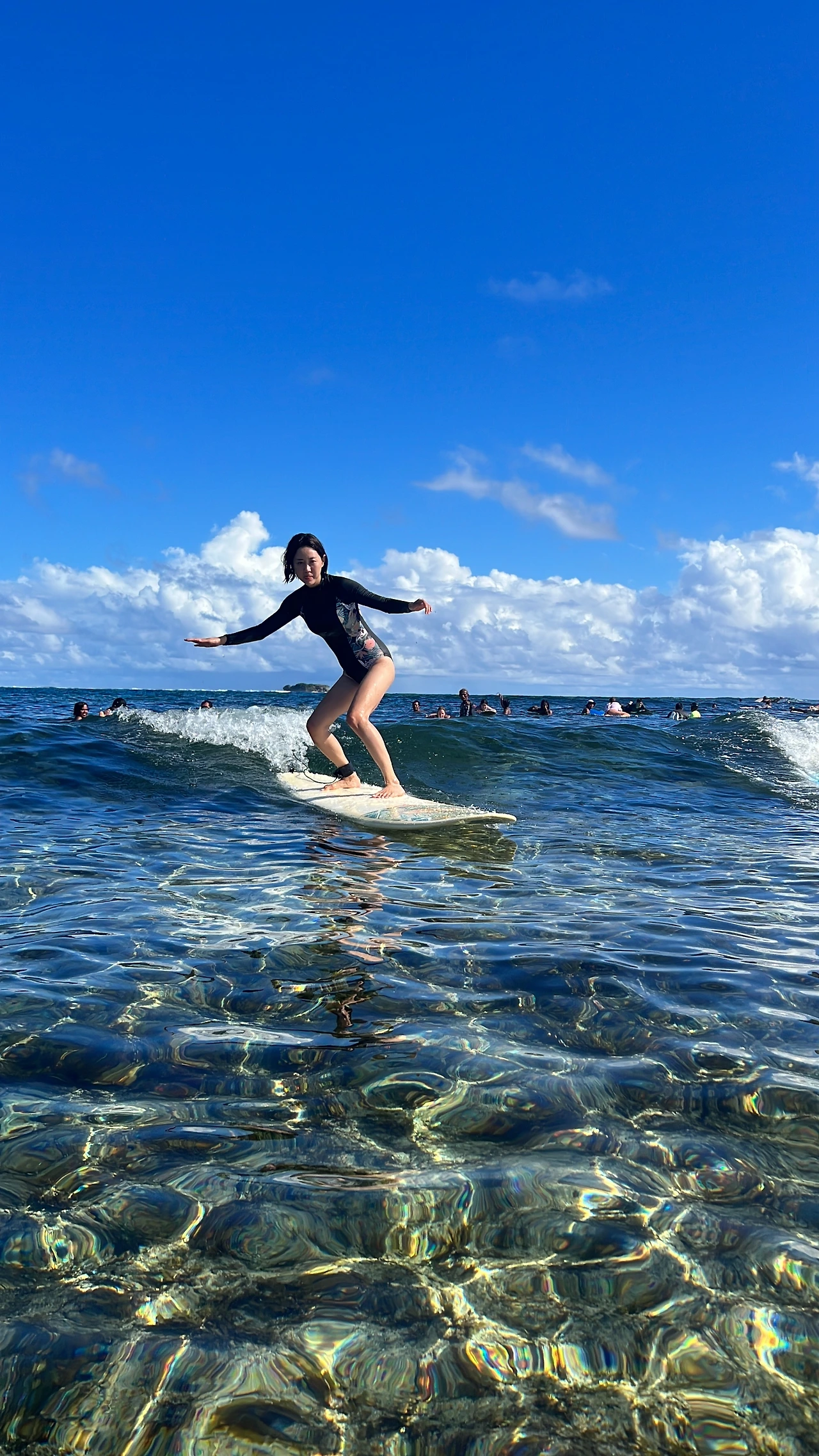 생애 처음 도전한 서핑임에도 1시간 동안 여덟 번의 파도를 탔을 정도.
