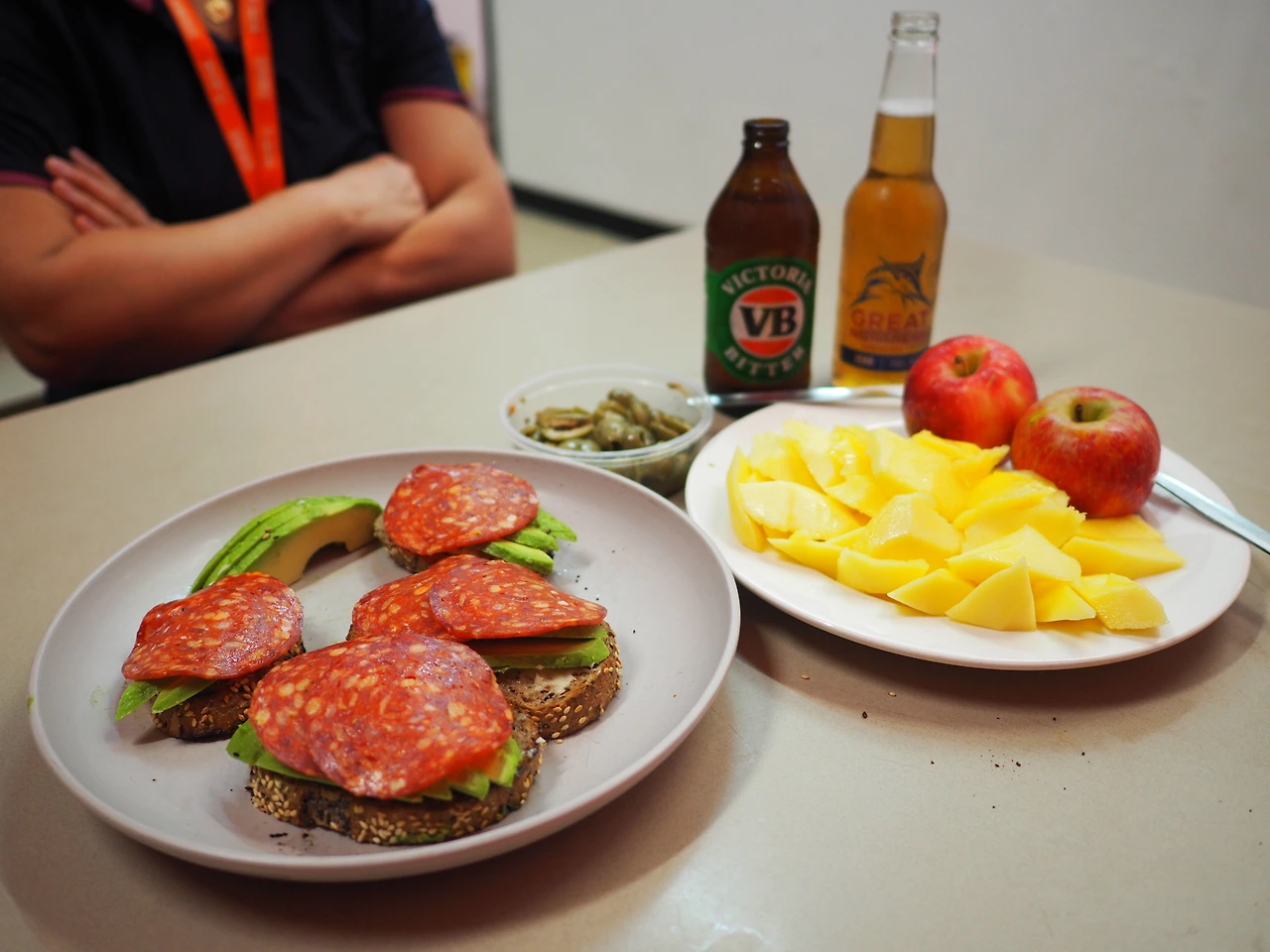 저녁 재료와 아침거리를 사려고 다시 마트에 들렀다. 호주 마트는 정말 과일이 싸고 신선하다. 서울에서는 요새 과일값이 너무 비싸 마트에 가서 들었다 놨다 하다가 빈 손으로 집에 오기 일쑤였다. 간단히 사려고 했던 식재료는 점점 많아졌다. 호밀빵, 망고와 아보카도 각 한 알, 사과 한 봉지, 치즈 두 종류, 살라미 한 봉지, 올리브 한 통… 재료가 좋아 고민하면서 고르고 고른 게 그만큼이었다. 숙소에 돌아와 엄마보다 먼저 샤워를 하고 주방으로 향했다. 게스트하우스 규모가 커서 사람이 엄청 많다. 과도 하나를 챙기고 과일을 씻어 자리에서 깎기 시작했다. 데운 호밀빵 위에 치즈를 바르고 잘 익은 아보카도를 썰어서 펼친 후에 살라미를 얹었다. 곁들여 먹을 망고와 사과도 준비했다. 잠시 휴식시간을 가지고 씻고 나온 엄마는 행복한 표정으로 샌드위치를 먹었다. “차려주는 저녁이 있는 삶 어때요” 했더니 “자랑하고 싶어” 하신다. 엄마의 맥주와 나의 무알콜 맥주로 축배를 들었다. 맛난 저녁을 먹었다니 성공적인 하루다.