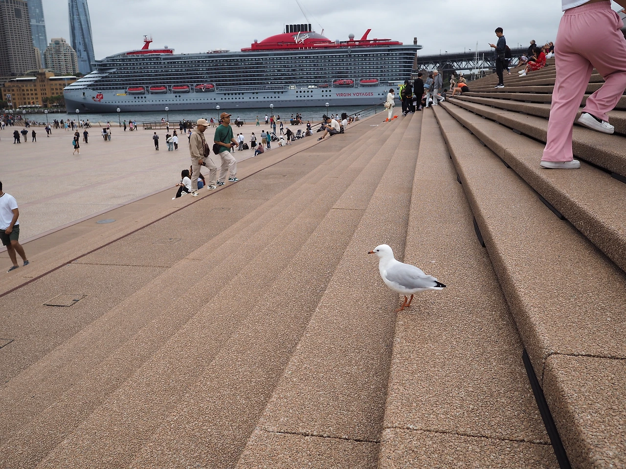 건물을 나와 담장 바로 밖에서 파는 젤라토를 두 개 샀다. 엄마가 계단에 앉아 바다를 보면서 아이스크림을 먹고 싶다고 했다. 별 기대 없이 산 아이스크림은 생각보다 맛있었다. 피스타치오 아이스크림에는 견과류가 잔뜩 들어있었고, 초콜릿 맛 아이스크림은 꾸덕하니 진하다. 행복감에 젖어있을 때 즈음 친구에게서 연락이 왔다. 남편과 함께 휴가를 내어 호주에 온 친구다. 2시간 동안 스냅사진 촬영을 하고 오페라하우스에서 15분 거리에 있는 현대미술관 앞 카페에서 쉬고 있단다. 서울에서도 보기 힘들었던 친구라 잠깐 얼굴을 보고 가자니 엄마가 흔쾌히 따라나선다. 사실 핸드폰도 먹통이라 엄마 없이는 곤란한 상황이긴 했다. 올드스쿨의 방향감각에 의존하여 어찌어찌 항구를 지나 미술관 쪽에 도착했다. 페리를 타러 온 사람들이 바글바글한 길이었다. 오랜만에 만난 친구는 오랜 촬영으로 조금 지쳐있었지만 그래도 행복해 보였다. 옛날 얘기를 짧게 나누고 서울에서 다시 보자며 헤어졌다.