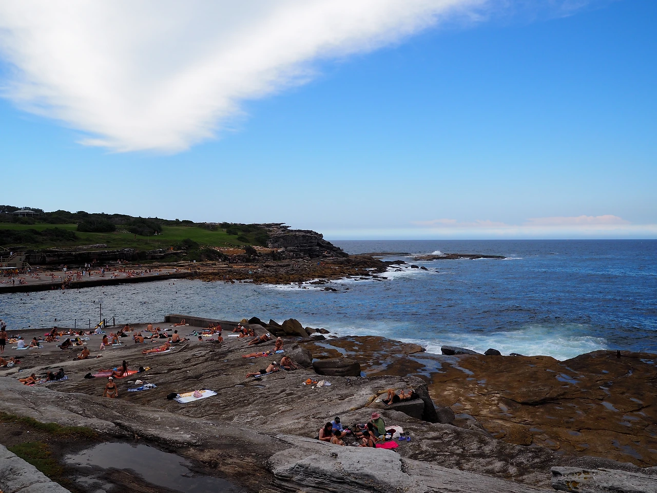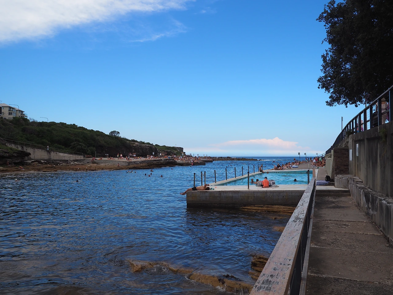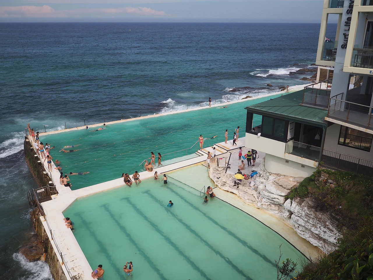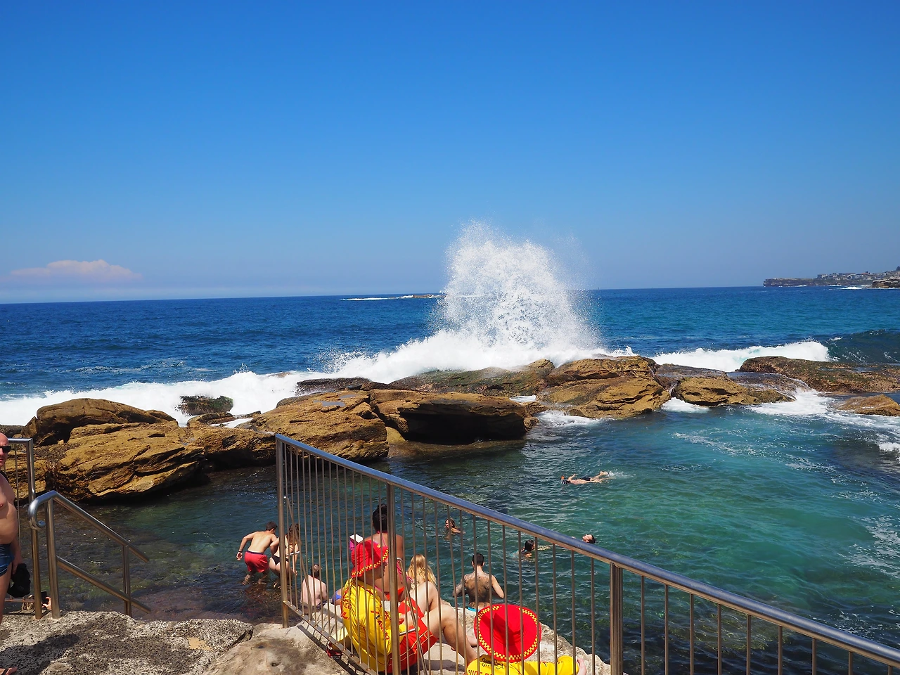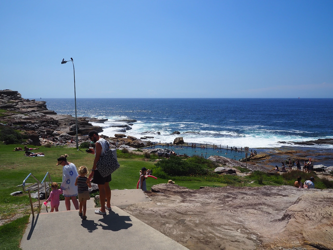 트래킹 코스는 총 길이 6km에 부지런히 걸으면 2시간 안에 완주한다는데 베낭도 무겁고 어제 2만 보 걸은 발걸음도 무겁고 한 발자국 걸을 때마다 모든 풍경이 아름다워 4km도 채 가지 못했는데 한 시간 반이나 흘러버렸다. 결국 남은 거리는 또다시 버스를 타고 이동하기로 했다. 엄마도 슬슬 배가 고프다고 하고, 나도 출출해진 참이다. 마지막 목적지는 본다이 해변이다. 그 유명한 수영장은 사진만 찍고 피시앤칩스든 뭐든 저녁거리가 될 만한 걸 먹기로 했다. 본다이 해변의 수영장은 역시 멋지긴 했지만 우리가 방문한 마혼 풀이 최고였다는 생각이 들었다.