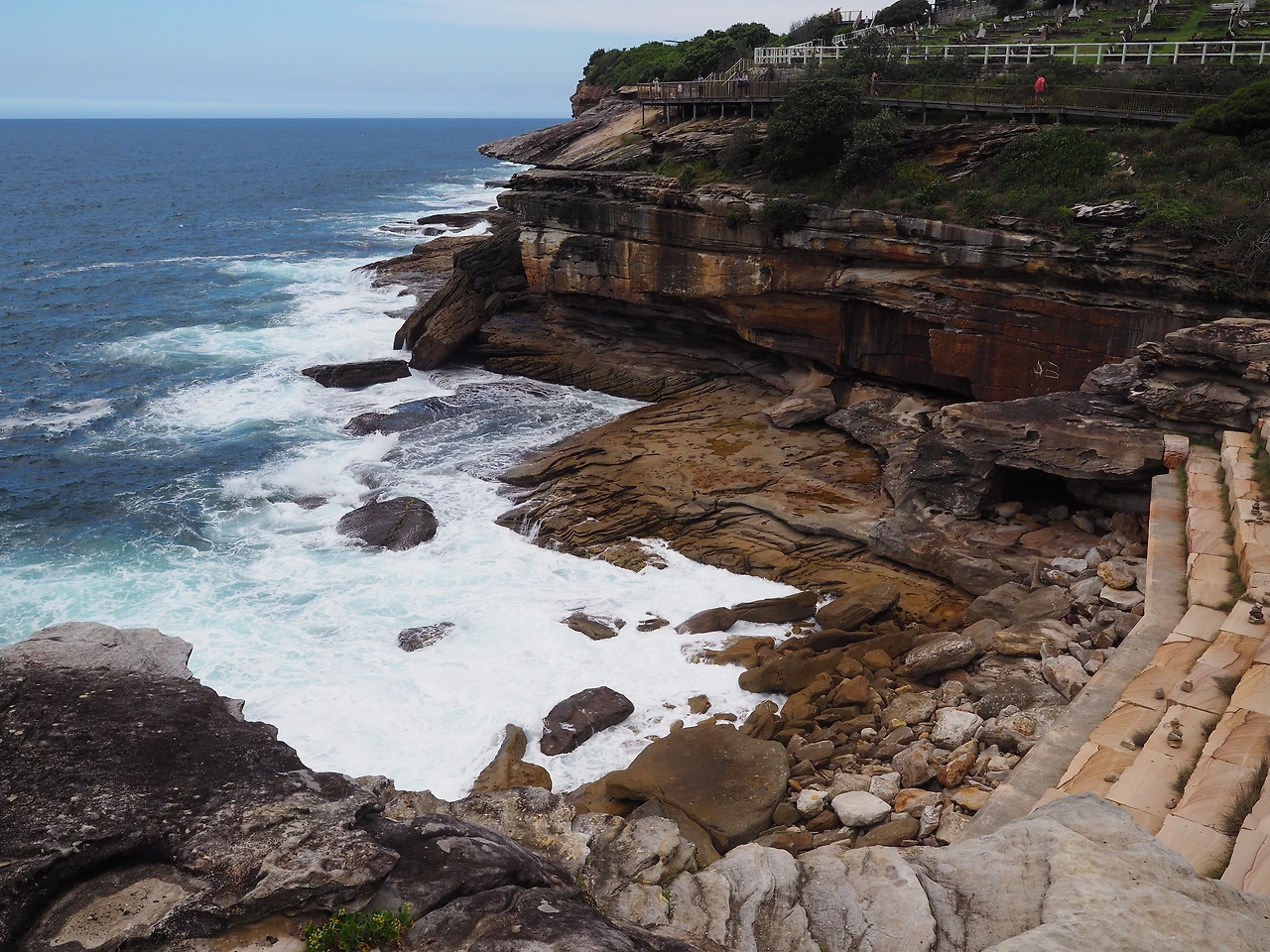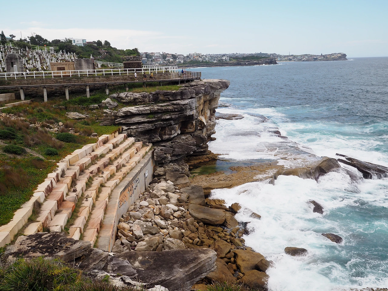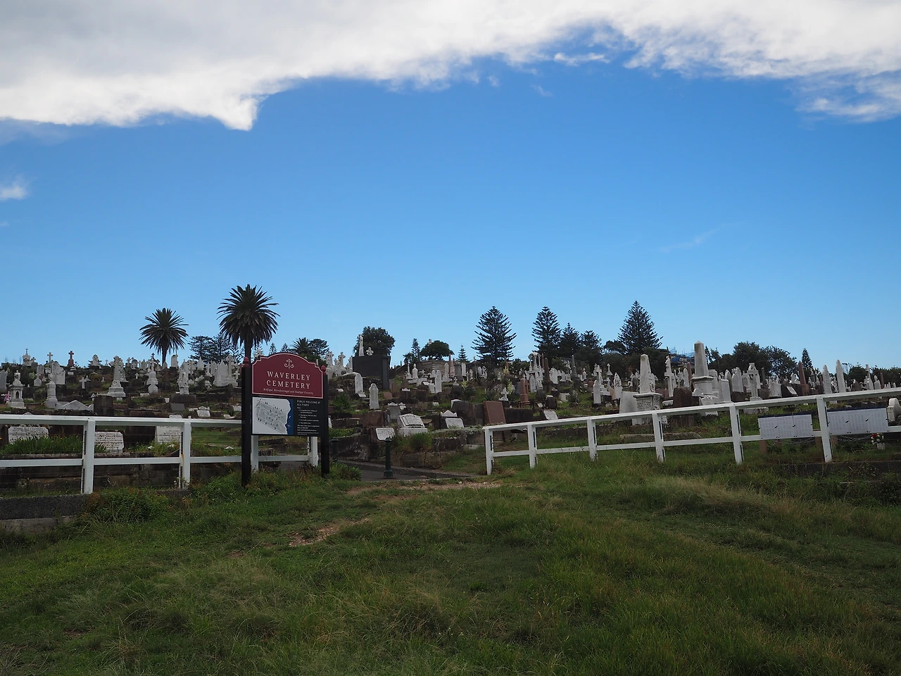 수영장에서 도시락을 꺼내먹고 나니 어쩐지 수영은 다 한 기분이 들었다. 얼렁뚱땅 샤워를 마치고 나왔다. 해변에는 어차피 수영복만 입고 다니는 사람 천지다. 수영복 위에 반바지와 얇은 바람막이 하나만 입고 트래킹 코스로 향했다. 트래킹 코스도 마찬가지로 구글 지도에서 찾은 기가 막힌 곳이었다. 본다이 해변과 쿠지 해변을 잇는 코스(Bondi to Coogee Walk)인데, 그 사이에 있는 공동묘지(Waverly Cemetery)가 장관이다.