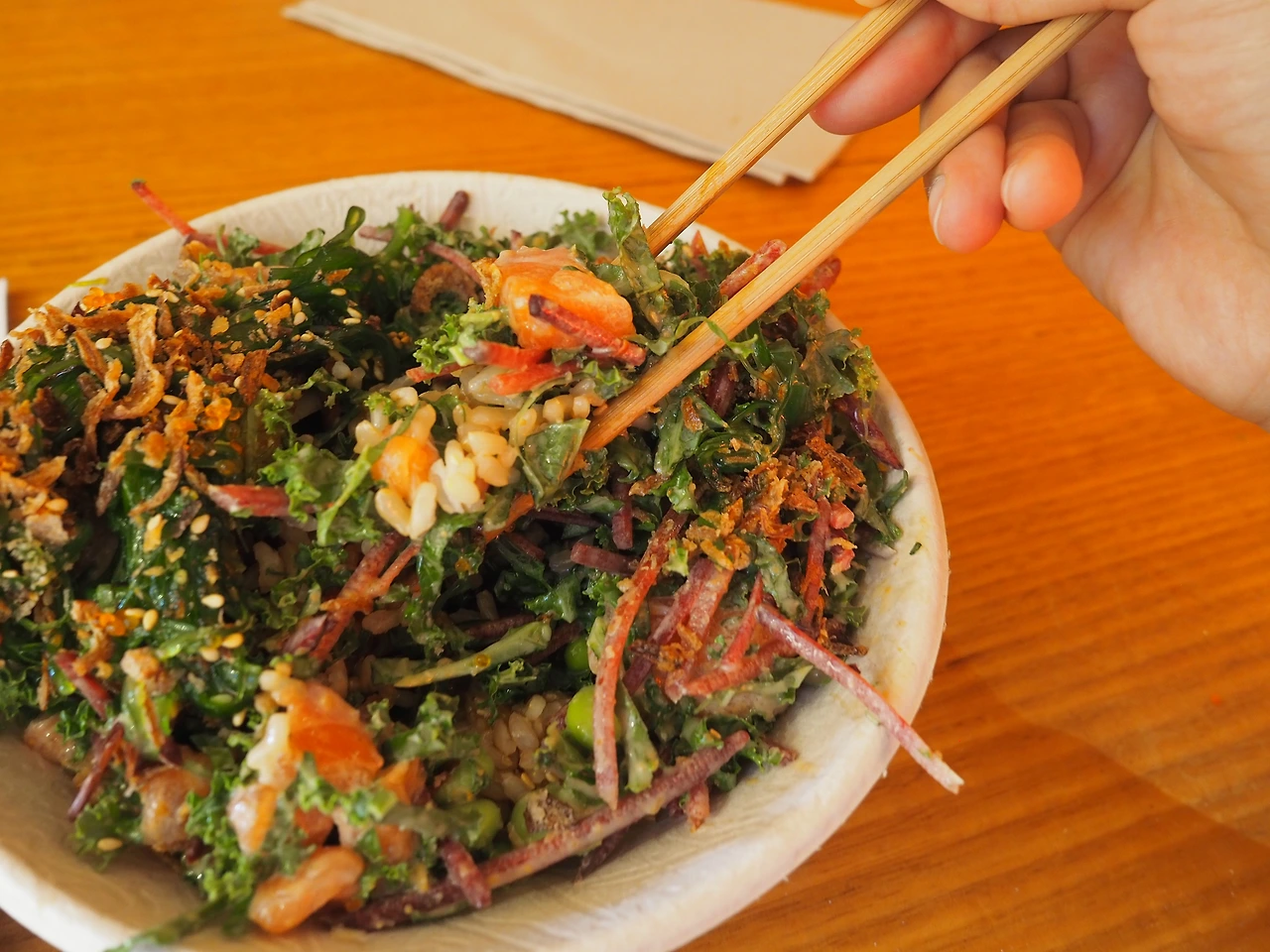 본다이 해변가에는 우리나라 해변가처럼 상가들이 줄지어 있다. 수영복을 파는 곳, 해산물을 파는 곳, 음식점과 카페가 많다. 피시앤칩스를 먹을까 하여 찾아보다가 평이 좋은 식당을 하나 찾았다. 피시앤칩스보다는 생선덮밥에 가까워보이는 ‘피시 볼(Fish Bowl)’이라는 식당이다. 현미밥에 토핑종류를 골라 주문했는데 역시 좋은 선택지였다. 엄마는 말버릇처럼 “외국에 나가서 왜 굳이 한식을 먹어. 그냥 그 나라 음식을 먹으면 되지.” 라고 했는데 그래도 밥과 젓가락질이 그립긴 했나 보다. 현미밥 위에 연어, 해초, 콩, 샐러리 등이 올라간 포케 비슷한 게 나왔다. 제법 맛있어서 한국에서도 이런 음식을 먹을 수 있으면 좋겠다는 생각이 들었다. 가격도 둘이 합쳐서 3만원, 서울 물가와 비슷한 식사였다.