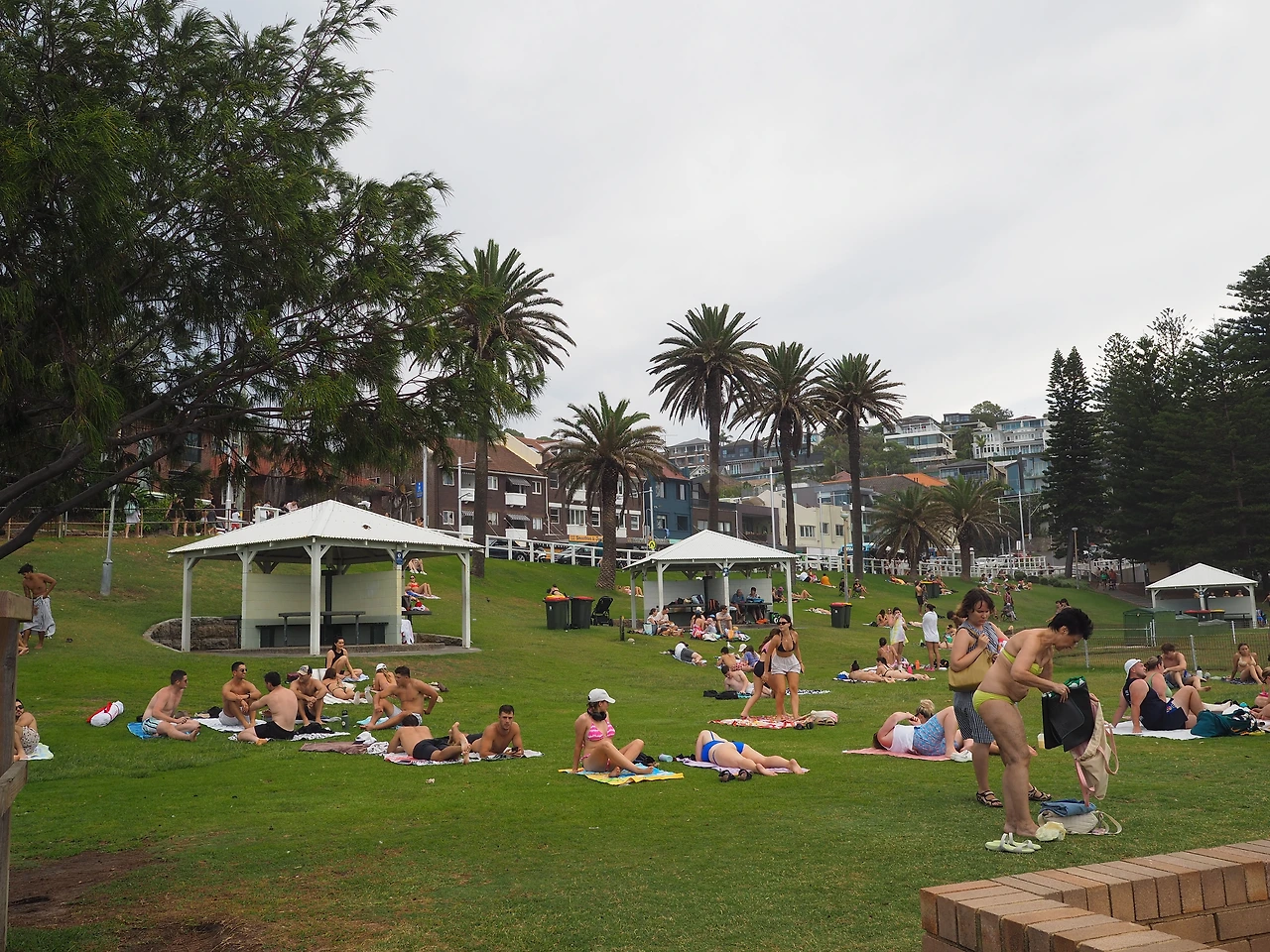 식사 정리를 마치고 베낭을 메고 나왔다. 수영복과 도시락, 수건, 비누 등 짐이 많았기 때문이다. 걸어서 버스정류장까지 8분, 버스 타고 30분, 그리고 다시 걸어서 8분쯤 가면 마혼 풀에 도착한다. 시드니에 도착한 이래로 날씨가 가장 화창하다. 날씨가 좋은 토요일이니 동네 사람들도 다같이 놀러 나왔다. 버스를 타고 가며 보는 모든 잔디밭마다 스포츠를 즐기러 나온 사람이 가득이다. 생활체육을 즐기는 사람들에게는 천국 같은 나라다. 버스에도 수영복만 입고 서핑보드를 챙겨든 사람들이 제법 많이 탔다. 서퍼들과 같은 정류장에서 내렸다.