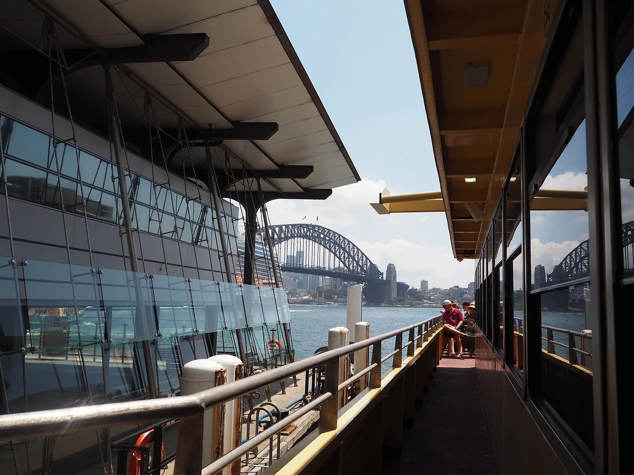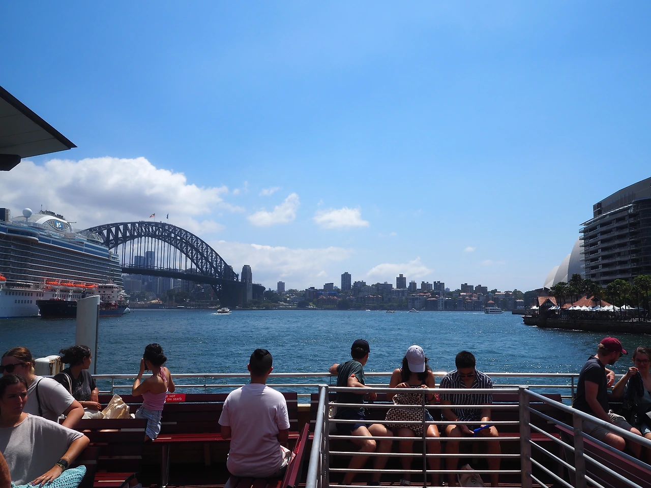 페리를 타서 바로 2층으로 올라가 배 측면의 바깥 자리에 앉았는데, 세상에 명당도 이런 명당이 없다. 항구를 나온 배가 U턴을 하더니 시드니 오페라 하우스와 중심지구를 보여주었다. 바람은 어마무시하게 불었지만 멋진 풍경에 셔터를 누르기 바빴다. 엄마는 또다시 “특등석이네 특등석!”을 외쳤다. 서큘러 퀘이에서 배를 탈 때 배 진행 방향의 오른쪽에 타면 끝내주는 뷰를 볼 수 있다는 사실을 알린다. 배는 앞머리를 부두에 대니 참고하여 방향감각을 잘 살려보기 바란다.