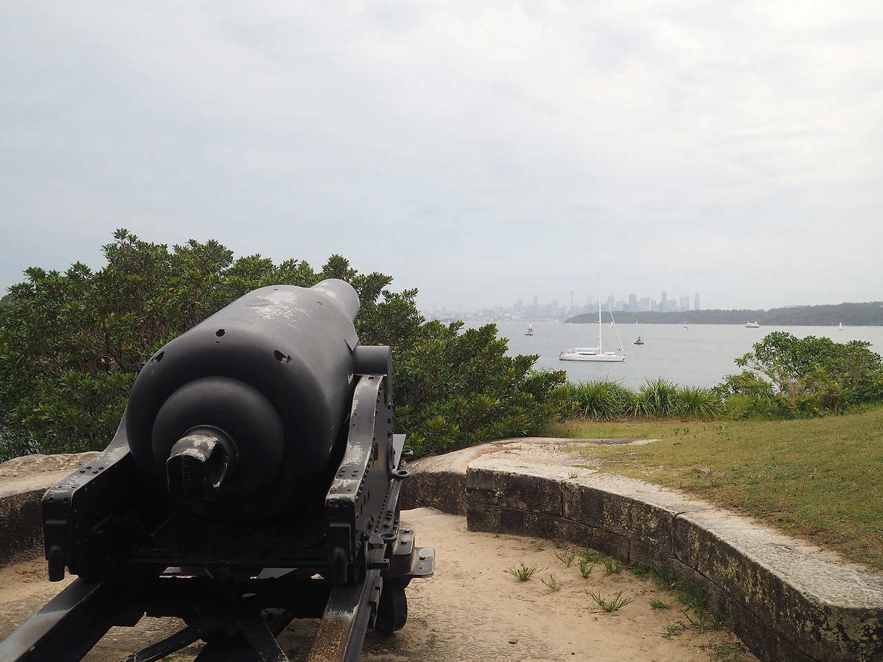 어느 정도 기운을 차린 다음에 다시 길을 나섰다. 노스 헤드보다는 좀 더 투박한 곳이었다. 옛 성벽과 대포가 그대로 남아 있었다. 나무가 없는 곳에서는 저 멀리 건너편의 노스 헤드가 보였다. 전반적인 산책길의 분위기는 우리나라 산의 둘레길과 비슷했다. 비도 한 두 방울씩 내리기 시작해서 결국 중턱 즈음 걸음을 돌려 내려왔다. 둘 다 휴식이 필요한 타이밍이다. 페리 선착장에 도착하여 10분쯤 기다리자 배가 들어왔다.