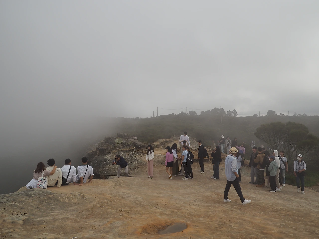 하루종일 비 예보가 있어 우려되는 가운데 투어가 시작되었다. 새벽 일찍 일어나 평소처럼 아침을 먹고 점심 도시락을 챙겨 나왔다. 집결 장소는 숙소에서 도보로 3분 거리여서 다행이었다. 가보니 한국인 가이드와 한국인들이 가득했다. 마흔 명이 넘는 사람이 한 차에 타고 링컨스 락으로 향했다. 가이드는 중노년의 한국인이었는데, 이동하는 내내 점잖고 차분한 말투로 이런저런 정보들을 말해주었다. 반쯤 자면서 듣느라 기억나는 것이 많지는 않지만, 블루마운틴이 유칼립투스 나무에서 나오는 기름기가 맑은 날에 증발하며 푸른 안개처럼 산을 뒤덮어 블루마운틴이라고 불린다는 것, 그리고 호주에서는 산불이 많이 나는데 나무들이 불에 붙으며 씨앗을 뿌리고 나무 속을 지나는 수관이 가운데로 모여 있어 불타고도 새 잎을 낸다는 것 등등이었다.