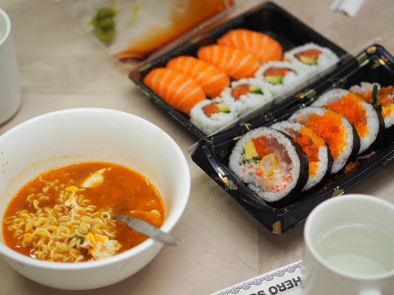 비를 맞으며 동물원을 돌았더니 피곤하기가 이루 말할 수가 없었다. 축축한 옷을 벗어놓고 라면 하나를 끓이고, 장보던 곳 근처 식당에서 롤 형태의 초밥을 샀다. 연어초밥과 아보카도 연어롤 한 팩, 후토마끼 한 팩. 엄마는 여행 초반에 굳이 외국에 나와서 한국 음식을 먹어야 하냐며 쿨한 태도를 보였지만 쌀과 라면을 먹을 때 표정이 제일 좋다. 내가 다 봤다. 아무튼 한국인인 것이다.