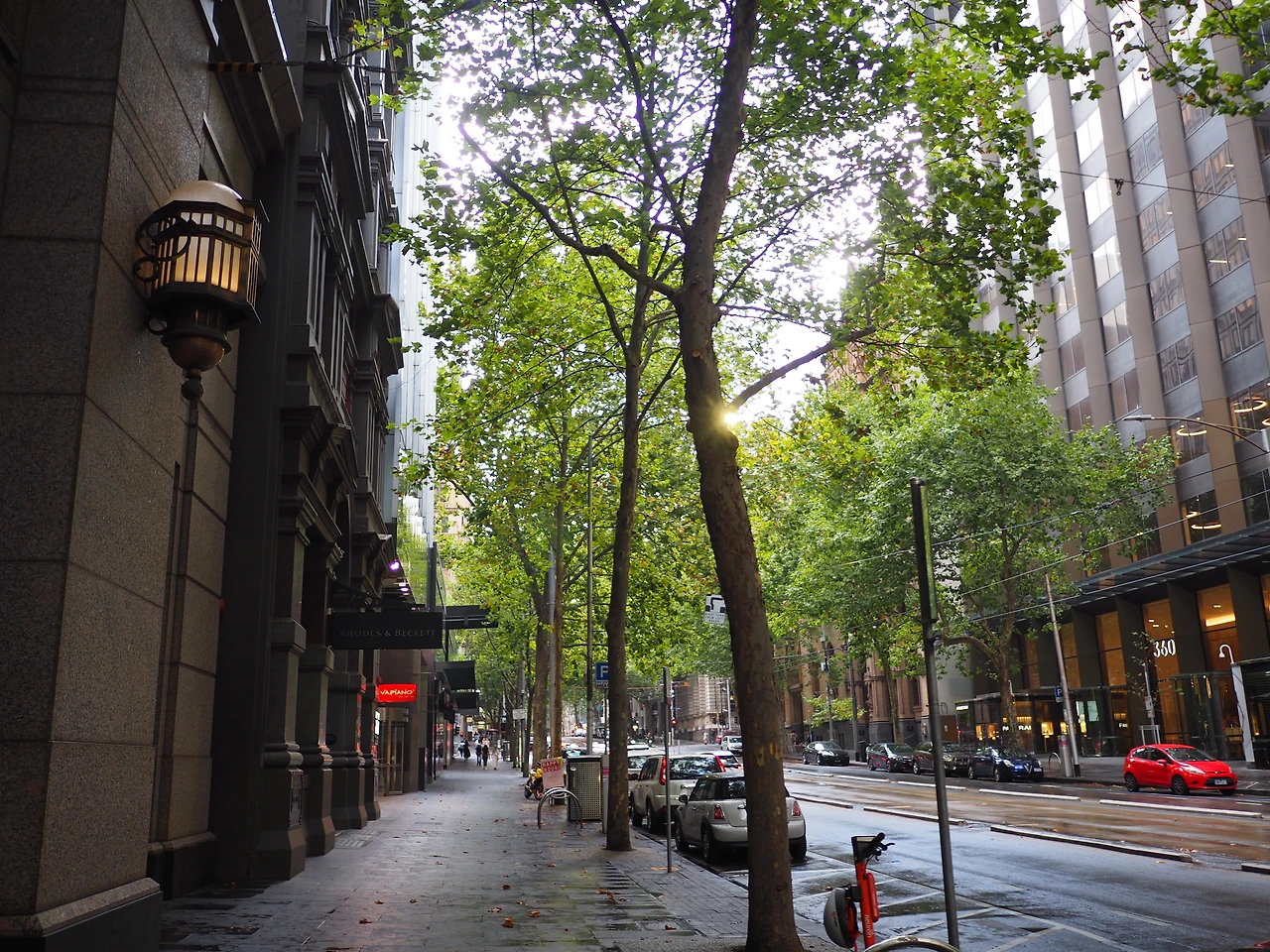 만족스러운 식사를 마치고 나와서 숙소까지 무료트램을 타고 이동했다. 길을 걸을 때에도 트램을 탈 때에도, 단 1시간 반 거리의 도시가 이렇게나 다를 수 있다는 사실에 놀란다. 우선은 날씨부터. 시드니는 항상 습한 날씨였는데, 지나치게 덥거나 지나치게 추운 적이 거의 없었다. 일교차도 심하지 않아 얇은 바람막이 하나를 햇빛을 피하는 용도, 가는 비를 피하는 용도, 바람을 피하는 용도 등등으로 쭉 쓸 수 있었다. 반면 멜버른은 잠깐 사이에도 하루에 몇 번씩 날씨가 바뀐다. 알고 보니 남쪽의 바다에서 불어오는 바람과 북쪽의 사막에서 불어오는 바람이 있어 이 바람이 바뀔 때마다 날씨가 바뀌고, 두 공기가 만날 때 비가 내린다고 한다. 그래서 멜버른은 하루 안에 사계절을 다 맛볼 수 있는 도시라고 한다. 낮에는 건조하게 타는 듯이 덥더니 밤에는 선풍기를 다 껐는데도 추울 정도다.