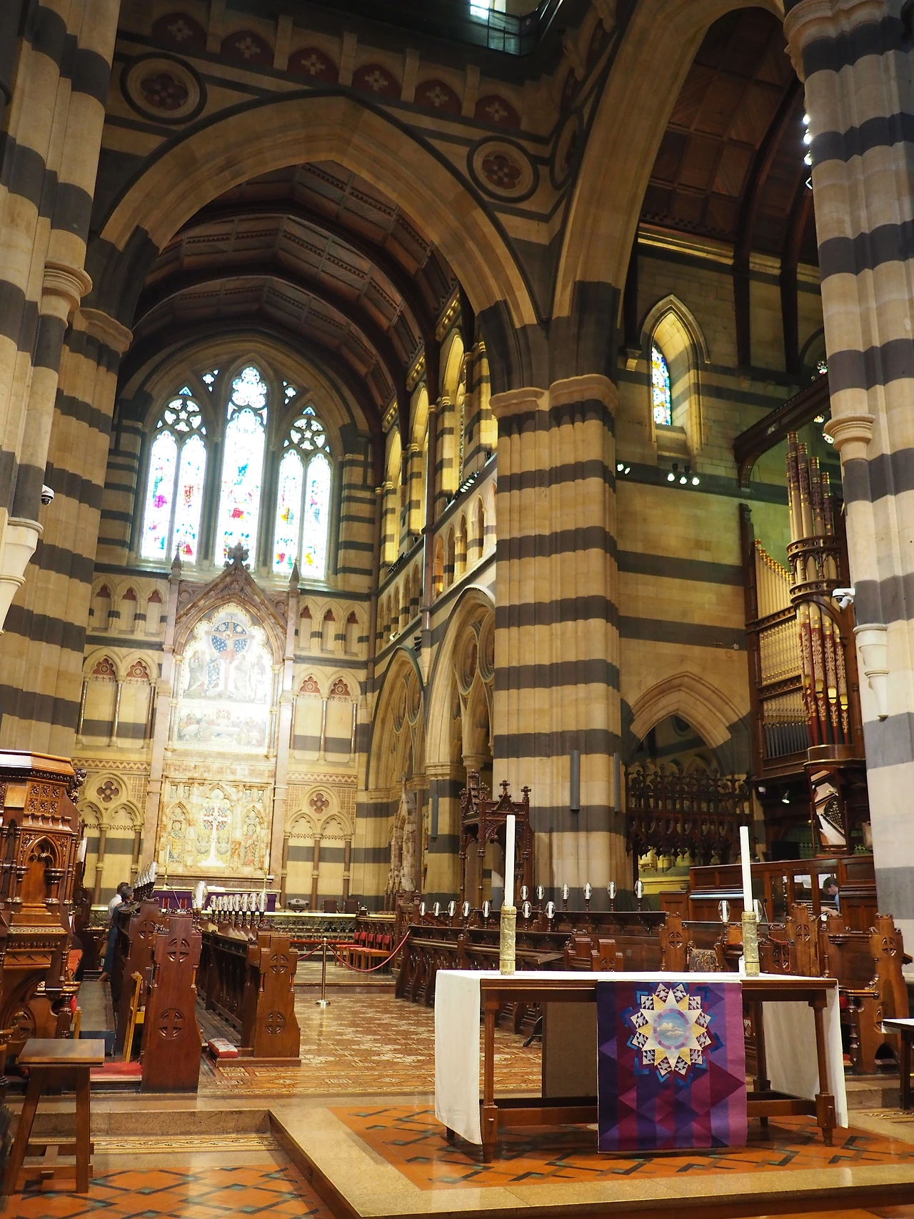 숙소로 돌아오는 길에 독실한 천주교 신자인 엄마를 위해 숙소 옆 대성당에 들렀다. 19세기 네오고딕 양식의 세인트 폴 캐시드럴(St. Paul’s Cathedral), 우리말로 하자면 성 바오로 대성당이다. 대도시의 중심부에 있는 것 치고는 규모가 작은 편이다. 이 동네는 천주교보다 개신교 신자들이 더 많은지 바로 근처의 침례교 교회(Collins Street Baptist Church)와 성공회 멜버른 교구(Anglican Diocese of Melbourne)가 더 규모가 크다. 내부가 어떻게 다른지 궁금하지만 성당과 달리 교회는 다녀본 적이 없어 들어가기가 조금 겁난다. 시간이 나면 한번 도전해 볼 생각이다.