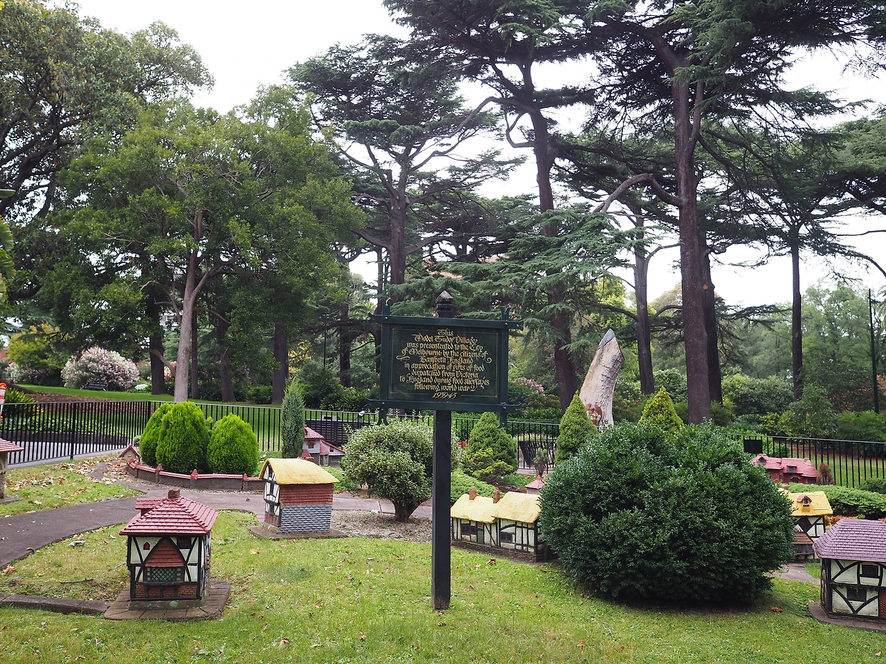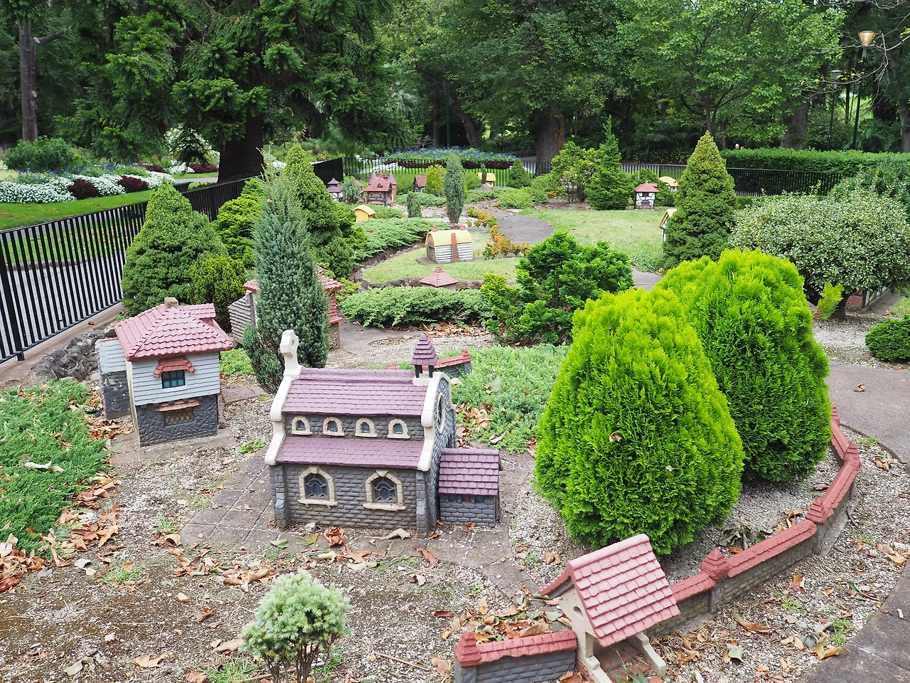 트레져리 가든스에서 북동쪽으로 걸으면 좀 더 큰 규모의 피츠로이 정원이 나온다. 세련되지는 않지만 꽃으로 가득 찬 작은 규모의 식물원, 영국인의 집을 그대로 옮겨둔 쿡스 코티지(Cooks’ Cottage), 우리가 지금 보는 피츠로이 정원의 모습을 만든 정원사인 싱클레어의 집이었던 싱클레어스 코티지(Sinclair’s Cottage) 등을 볼 수 있다. 물론 가장 유명한 것은 소인국 마을인 모델튜더빌리지(Model Tudor Village)다. 나무를 보던 시야에서 조금만 아래로 내리면 밑에 자그마한 주택 모형들과 주택 사이즈에 맞춘 작은 나무들이 심겨 있다. 2차 세계대전 당시 굶주리던 영국에 식량을 보내준 것에 대해 감사하는 의미로 선물해 준 마을이라고 한다.