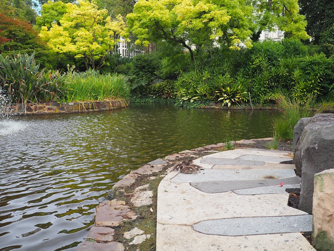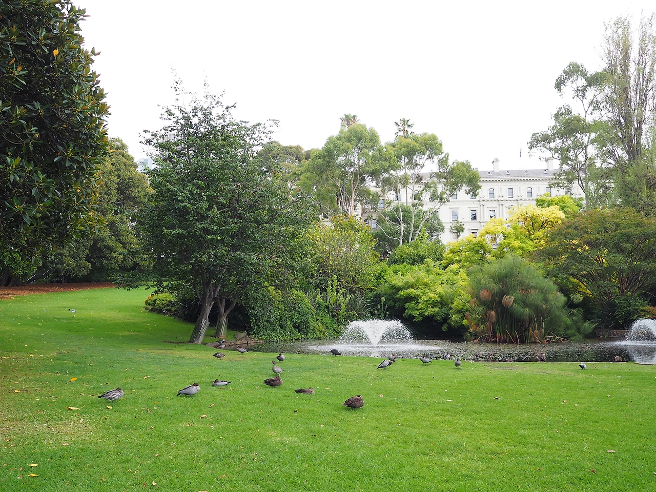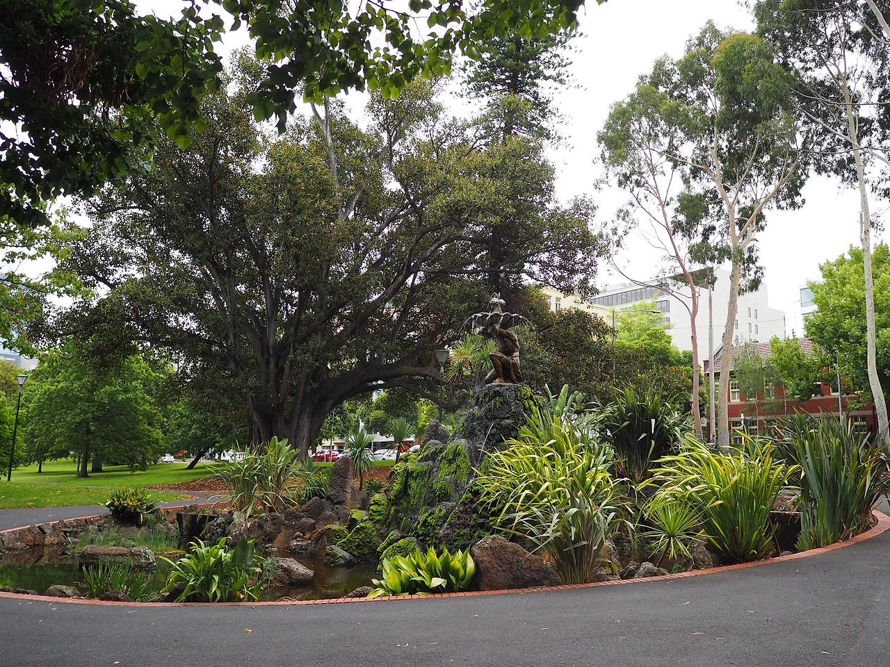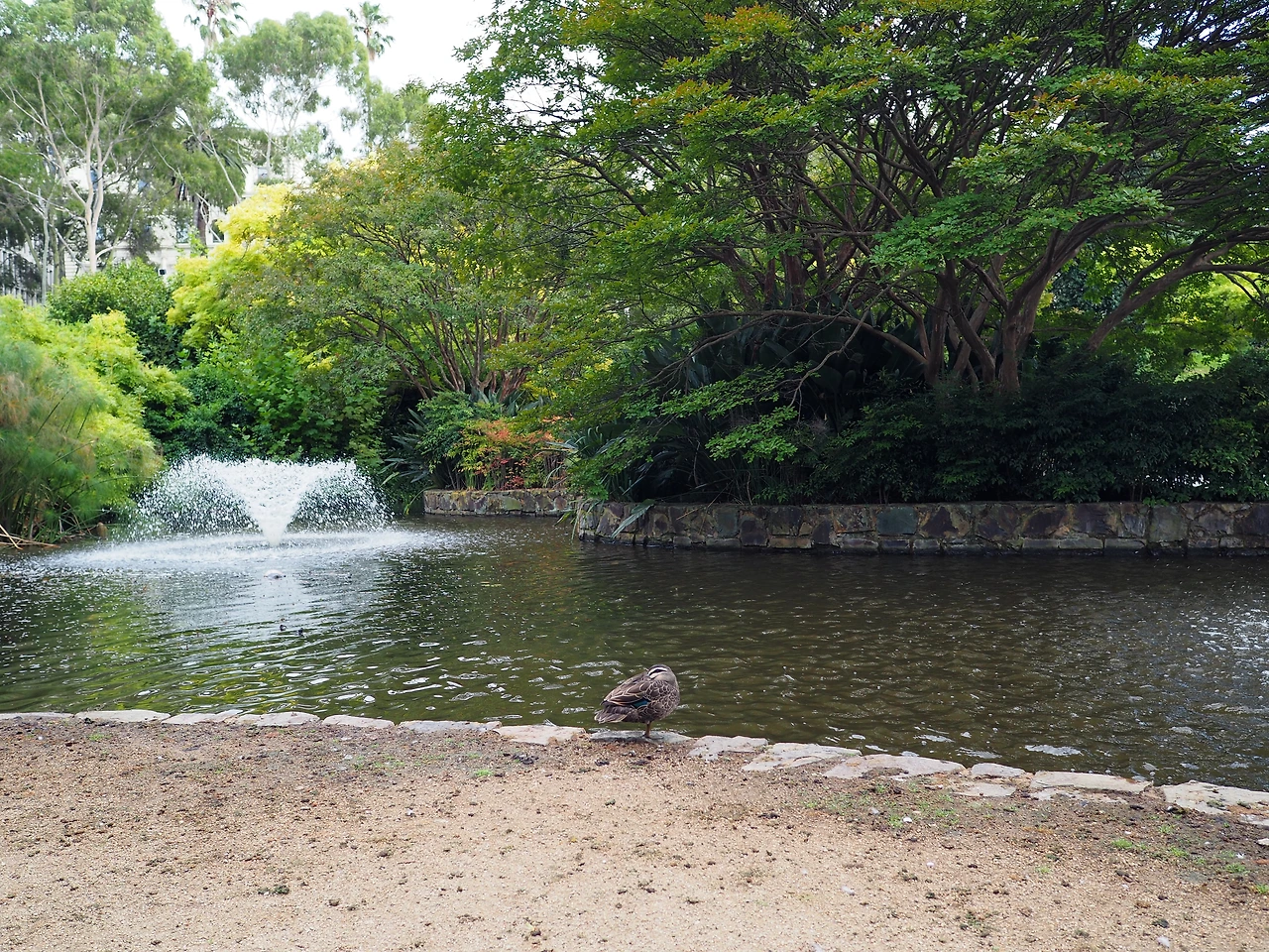 박물관은 시드니에서도 큰 규모의 전시를 봐서 과감히 생략하고, 공원이 아름답다는 피츠로이 공원으로 향했다. 아직 이른 시간이라 사람이 많지 않다. 트레져리 가든스(Treasury Gardens) 가운데에 있는 분수가에 잠깐 앉아 커피타임을 즐기기로 했다. 가만히 앉아있으니 인구밀도보다 조류밀도가 더 높아진다. 온갖 오리들이 우리를 둘러싼다. 한 발을 몸 아래로 숨기고 고개를 뒤로 돌려 기대고 자는 오리, 분수대의 물에 뛰어들어 유유히 떠다니는 오리, 열심히 털을 고르는 오리, 그냥 뚜벅뚜벅 걷는 오리, 깃 사이에 청록색의 예쁜 깃털을 숨긴 오리, 다이빙을 시도하는 오리, 아직 솜털이 남아있는 청소년 오리, 아기 오리 네 남매, 오리 사이에 서 있는 다른 새, 이 오리, 저 오리… 아무튼 그 동네 오리가 다 모인 분수대는 알고 보니 미국의 존 에프 케네디 대통령을 기리는 곳이었고, 그 옆에는 화재를 진압하다가 사망한 용감한 사람들을 기리는 공간이 따로 있었다.