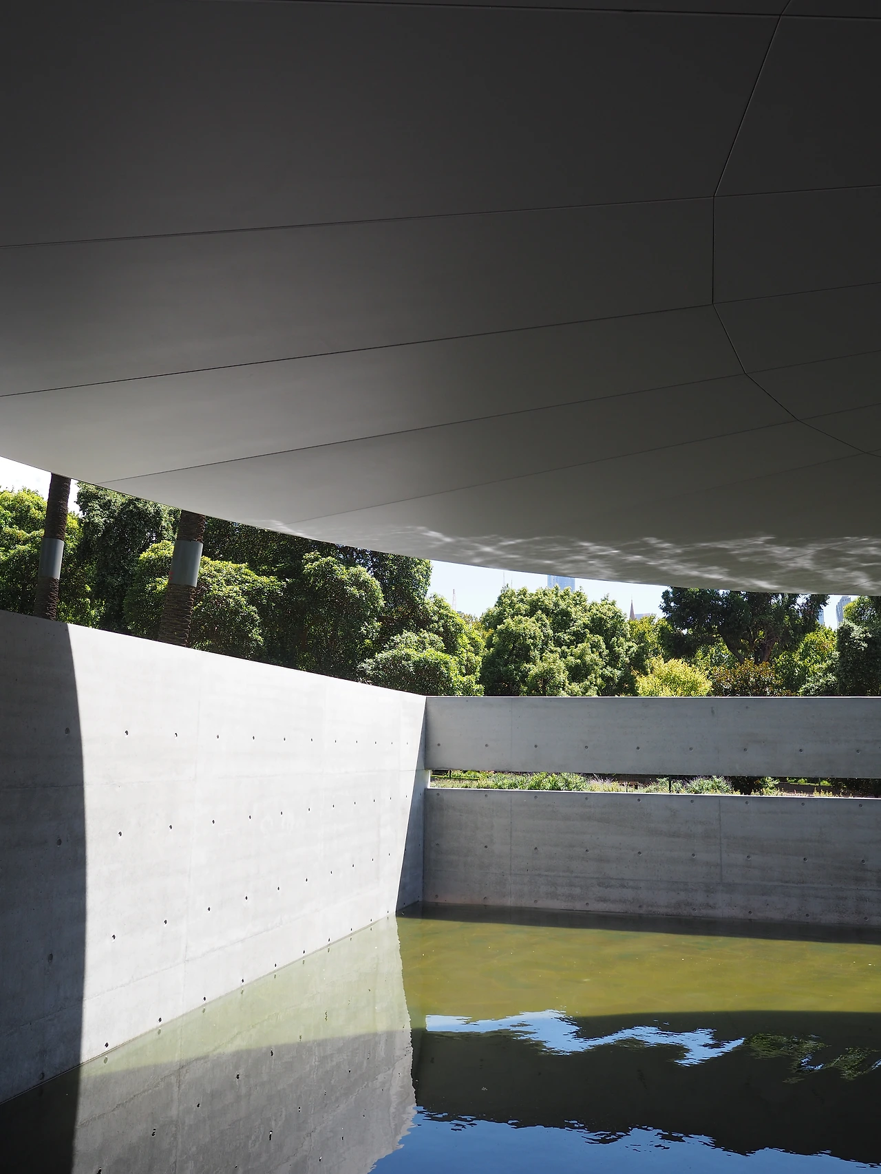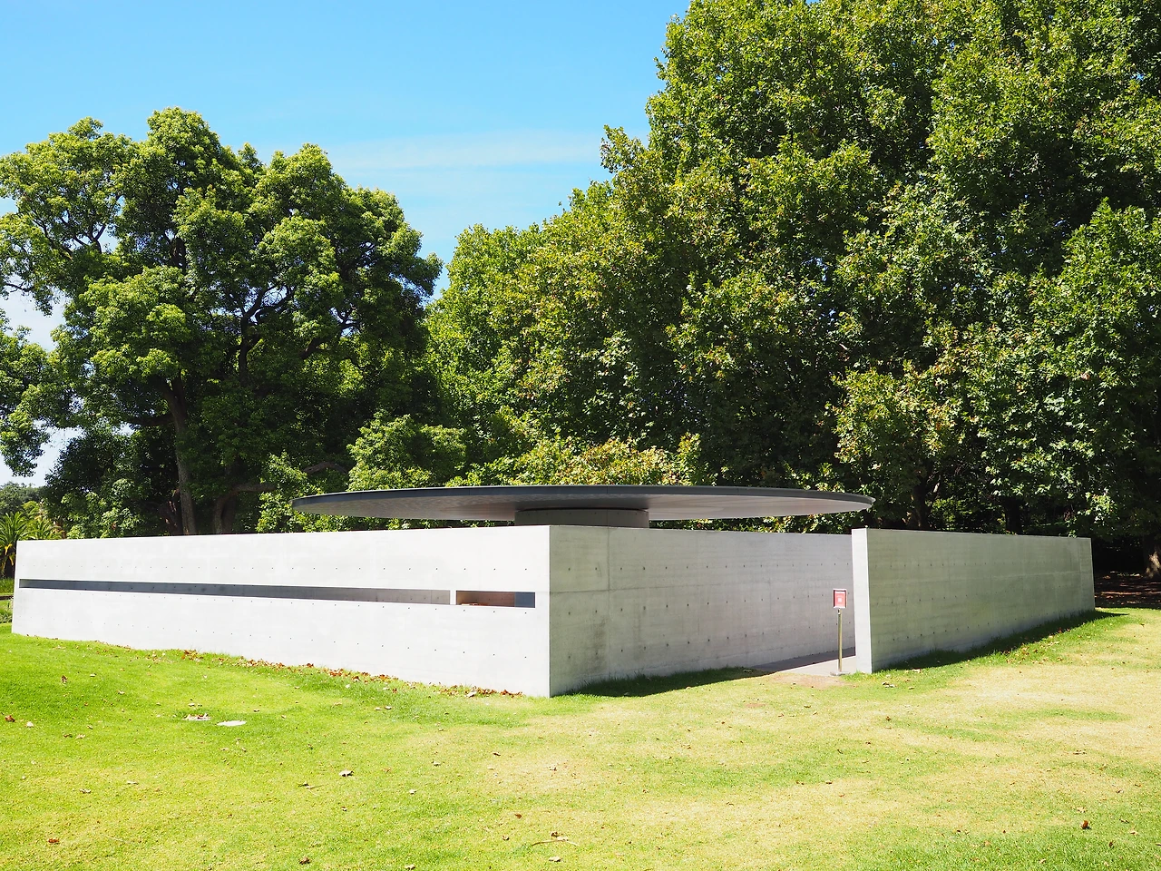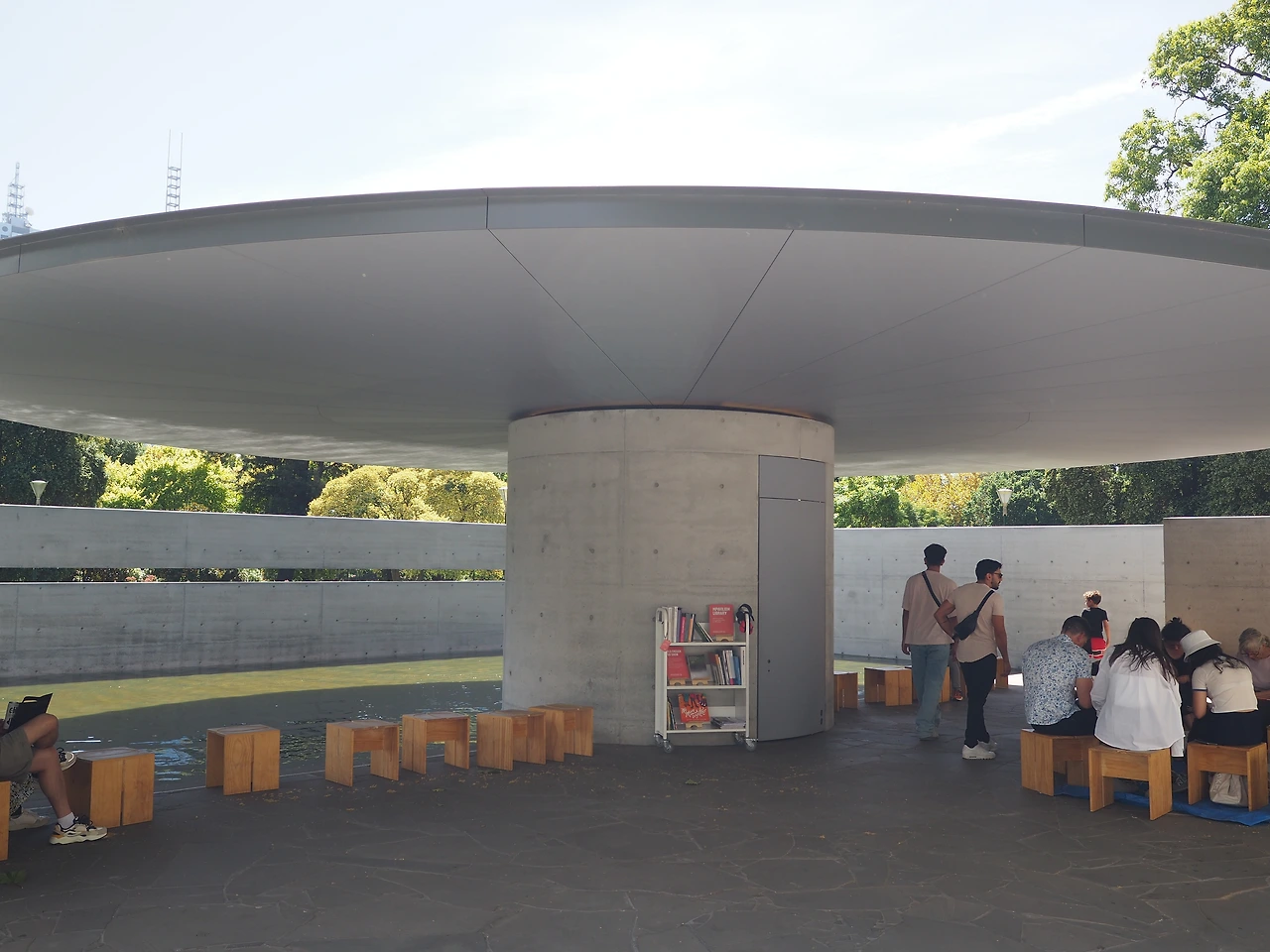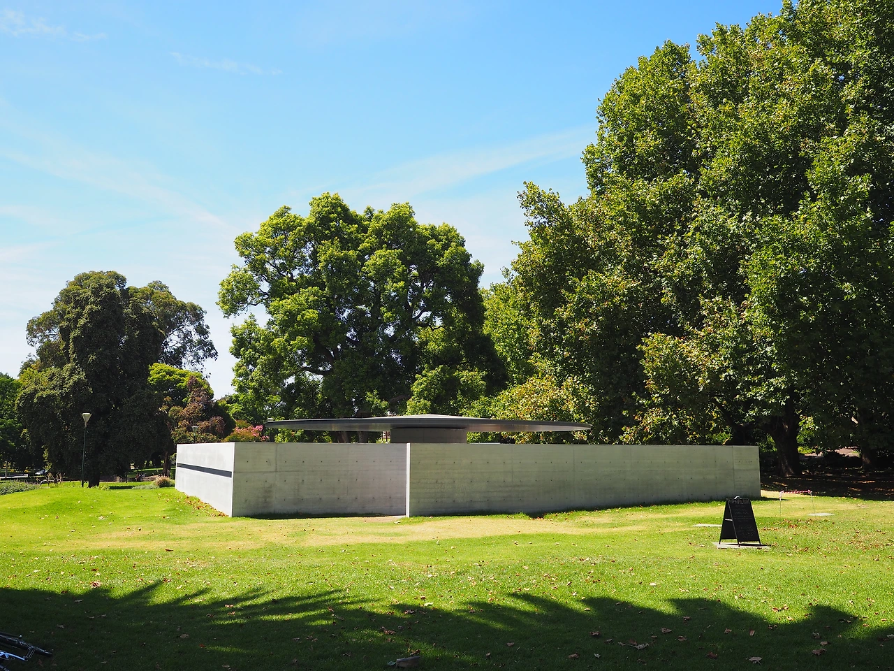 플린더스 역에서 다리를 건너 남쪽으로 내려가면 퀸빅토리아 가든(Queen Victoria Gardens)이 나온다. 여기엔 아주 특별한 파빌리온(MPavilion)이 있다. 파빌리온은 우리나라로 따지자면 정자 같은 개념인데, 지붕과 기둥으로 이뤄진 구조물을 말한다. 보통은 실외공간이지만 실내공간으로 만드는 경우도 있고, 임시 건축물인 경우도 많다. 형태나 기능에 별다른 제약이 없다 보니 작가들이 자신의 예술성을 뽐내기에 아주 적합한 건축물이라고 할 수 있다. 이곳의 파빌리온은 매해 건축가나 디자이너가 새 파빌리온을 만드는데, 우리가 갔을 때에는 안도 다다오가 만든 파빌리온이 있었다. 3월 초까지 있다가 철거하고 다음 작가의 작품을 짓을 예정이다. MPavilion의 역사도 꽤 오래되었다. 안도 다다오의 파빌리온이 10번째라고 하니 벌써 십 년째다.