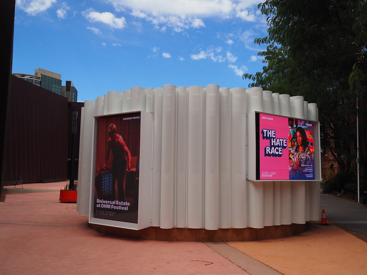 파빌리온에서 나와 공원을 빠져나왔다. 길 건너편에는 현대예술로 유명한 ACCA(Australian Centre for Contemporary Art)가 있다. ACCA로 가는 길이 모두 예술인 마을의 분위기다. 다만 일요일이라 그런지 사람은 없다. 드디어 도착한 건물은 여러 금속 판이 서로 엇갈리며 자리를 잡은 듯한 모습이다. 꽤 큰 규모의 건물인데 전시 공간으로 오픈된 곳은 규모가 크지 않다. 다른 공간은 아마도 사무 공간이나 스튜디오로 쓰이는 것 같다. 바로 옆에는 Malthouse라는 맥줏집 같은 이름의 공연장이 있다. 예술 관련 행사가 있을 때 찾아오면 좋을 것 같은 동네다.