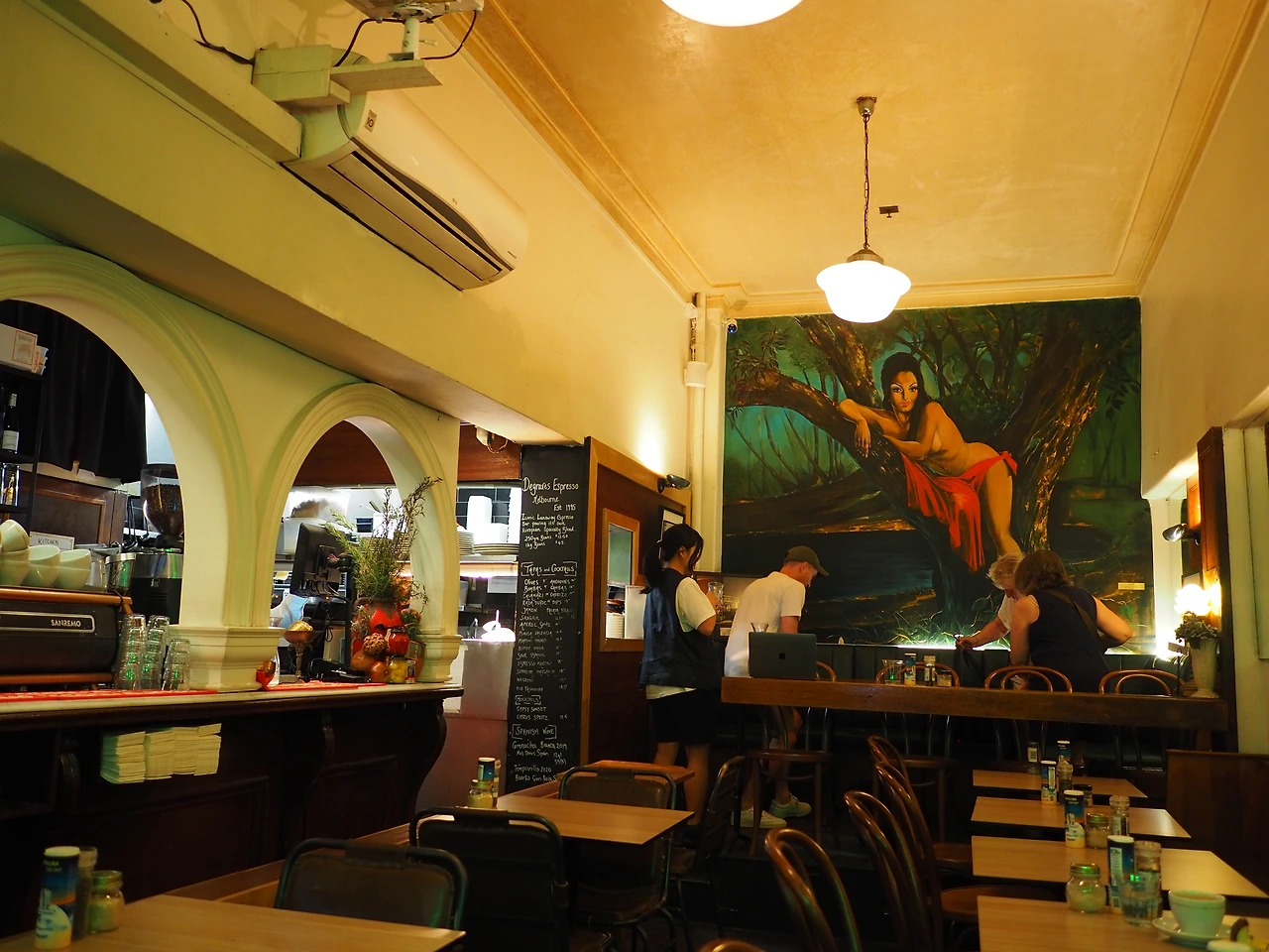 조금 일찍 숙소에서 나온 김에 나에게 주어진 시간은 두 시간. 카페로 유명한 디그레이브스 거리(Degraves St.)로 갔다. 성당에서 멀지 않은 곳이다. 일요일 오전이라 브런치를 즐기러 나온 시민들이 많다. 좁은 거리 양쪽에 카페들이 간판을 내밀고 있고, 거리 가운데에는 파라솔과 테이블들이 놓여있다. 시끌시끌한 인파를 피해 창가 쪽에 자리가 있는 카페를 찾았다. 알고 보니 이 거리의 터줏대감인 아주 오래된 카페인 Degraves Espresso다. 멜버른 하면 매직이지. 플랫화이트보다도 진한 것이 매직의 맛이다. 물론 나는 디카페인 커피를 마시니 기분만 내는 꼴이지만. 애플워치로 2시간 알람을 맞춰두고, 키보드를 꺼내고 앞에 핸드폰을 세워두고, 커피 한 잔을 천천히 마시며 여행기를 채워나간다. 유럽여행기를 매일매일 쓸 때에는 그날그날의 짧은 메모만 남겼는데 책을 내면서 그 글을 계속해서 다듬는 작업을 하다 보니 글을 쓰는 내공도 많이 는 것 같다. 그래도 매일의 짧은 메모라도 남긴 것이 책을 내는 데 큰 바탕이 되었다. 이 글도 나중에 어떤 식으로 쓰이게 될지는 모르겠지만 최소한 엄마와의 추억을 남기는 데에는 도움이 되겠지.