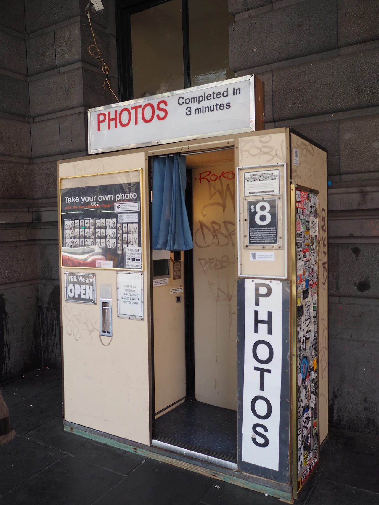 멜버른 여행계획은 거의 시드니에서부터 짰다고 해도 과언이 아닐 정도로 무계획으로 왔는데, 그 와중에 일찍부터 하고 싶다고 점찍어둔 것이 있었다. 바로 50년이 넘은 스티커 사진기에서 사진을 찍는 것이다. 솔직히 말해서 ‘스티커’ 사진기는 아니다. 우리에게 익숙한 인생네컷 스타일의 사진이 나오는데, 이제는 세계에서 단 한 곳의 공장에서만 이곳에서 쓰는 필름을 생산한다고 한다. 진짜 옛날 필름에 찍히는 즉석 흑백사진기다.