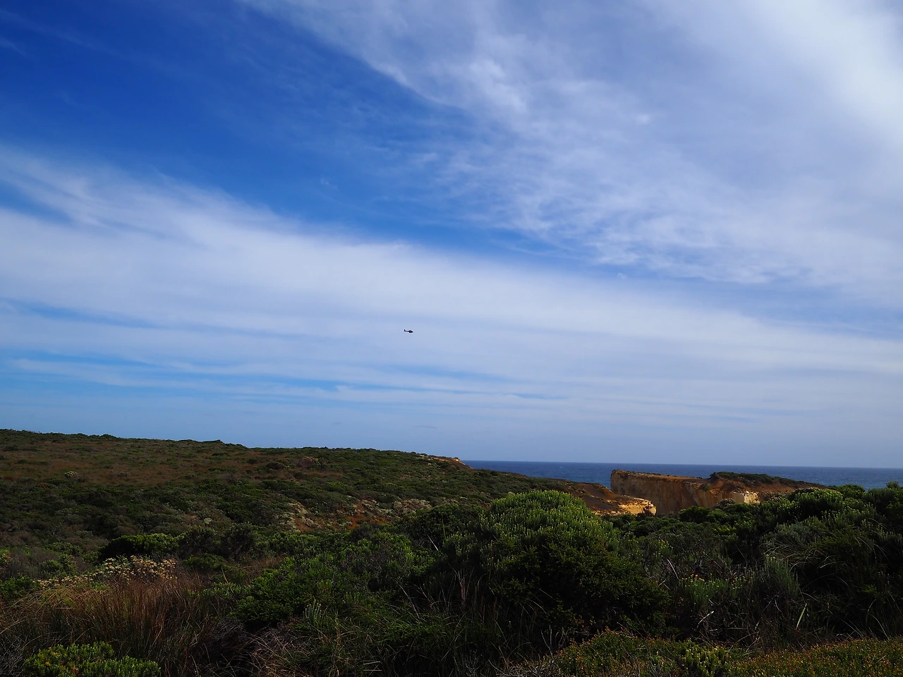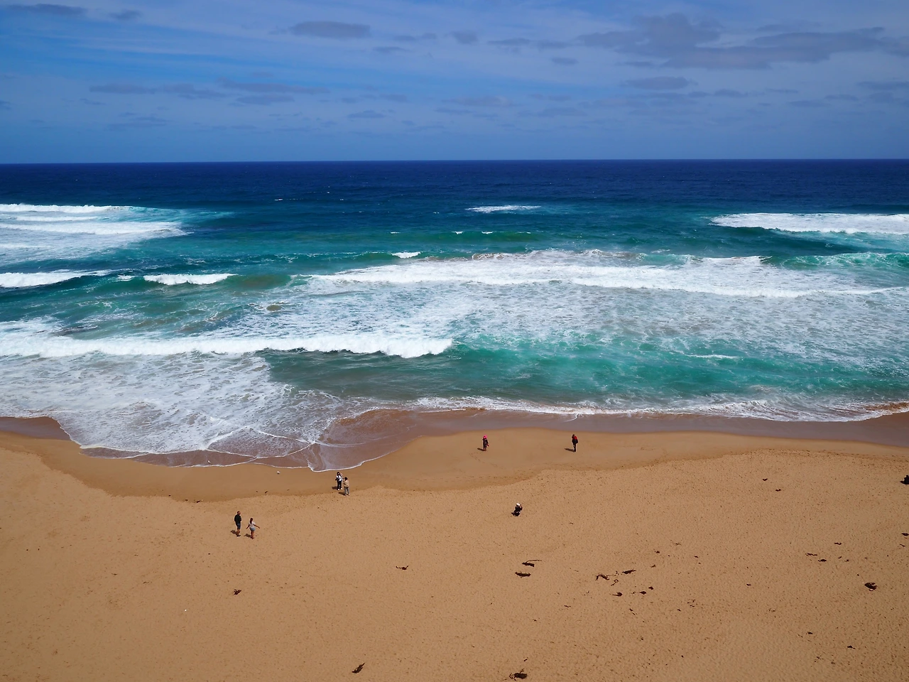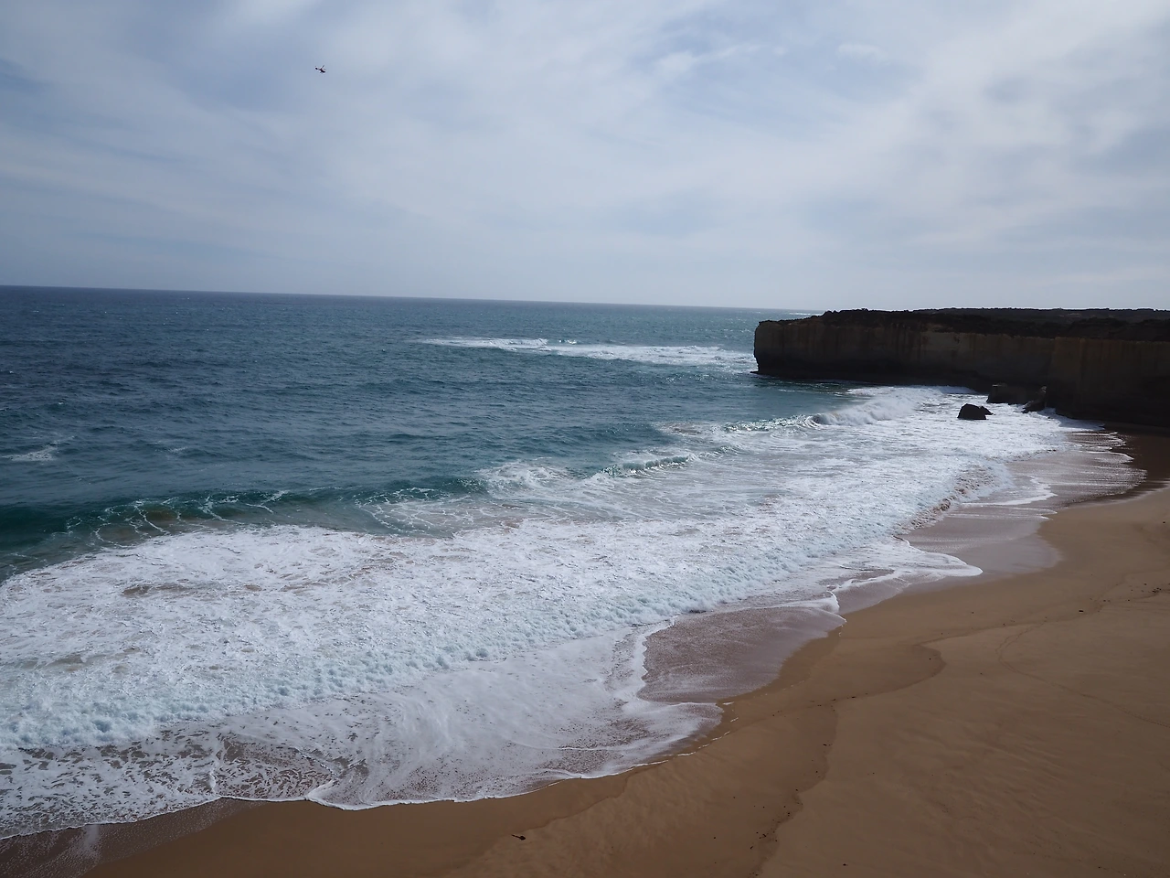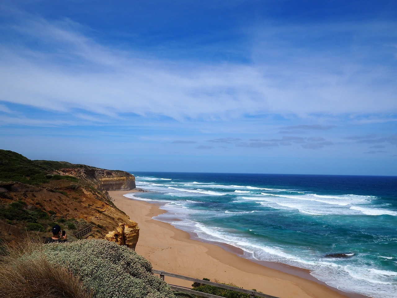 모습은 8 사도가 되었지만 이름은 여전히 12 사도인 이곳은 헬리콥터로 돌아보는 것이 가장 유명한 즐길거리지만, 엄마도 나도 높은 곳에서 굳이 내려다보는 것에는 큰 흥미가 없어 버스에서 내려주는 키오스크에서부터 육지길을 따라 한 시간, 바닷길을 따라 30분을 쭉 걷기로 했다. 키오스크에서 나와 왼쪽으로 가면 육지길(Twelve Apostles Lookouts)이고 오른쪽으로 가면 바닷길(Gibson Steps Lookout Beach)이다. 육지길은 아까 점심식사를 했던 숲길과 비슷하다. 좁고 구불구불한 비포장도로가 끝도 없이 이어진다. 그늘이 제법 있어 걷기에 부담스럽지는 않았다. 다들 바닷길로 갔는지 육지길은 한산하다. 한참을 걷고 났더니 수풀 사이로 바다가 보이기 시작했다. 웬 주차장을 지나니 가파른 절벽을 따라 폭이 좁은 계단(Gibson Steps)이 설치되어 있다. 계단을 따라 반쯤 내려가니 12 사도의 일부인 바위 사이에 고운 모래로 이뤄진 해수욕장이 보였다. 절벽이 어찌나 높은지 아래에 있는 사람들이 미니어처로 보일 지경이다. 12 사도의 높이가 45m쯤 된다고 하니, 이곳도 비슷할 것이다. 아파트로 보면 15층쯤 된다. 절반쯤 내려가다가 다시 올라올 길이 멀 것 같아 걸음을 돌렸다.