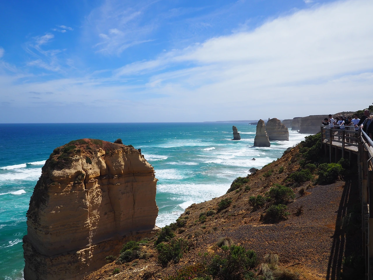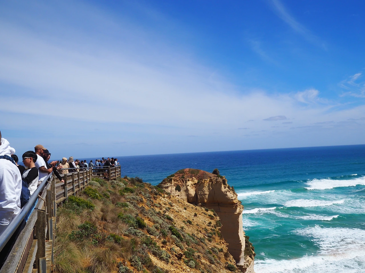 왔던 길을 되돌아가서 갈림길에서 바닷길로 향했다. 육지길처럼 한참 걸어야 할 줄 알았더니 금세 바다가 나온다. 가이드가 육지길을 먼저 돌고 나서 바닷길로 가라고, 바닷길을 먼저 가면 항상 늦게 나온다고 한 이유를 알 것 같았다. 조금만 걷다 보니 곧 바다와 12 사도가 눈앞에 펼쳐진다. 먼저 이곳을 본 상태에서 긴 길을 따라가려면 아무래도 발걸음이 더 무거울 터였다. 풍경은 아까 육지길보다 훨씬 좋았지만 그래도 두 길 중 걷고 싶은 길을 고르라면 육지길을 고를 것이다. 바닷길은 데크를 따라 사람이 가득 차 있어 사진 한 장 찍기도 힘들었다.