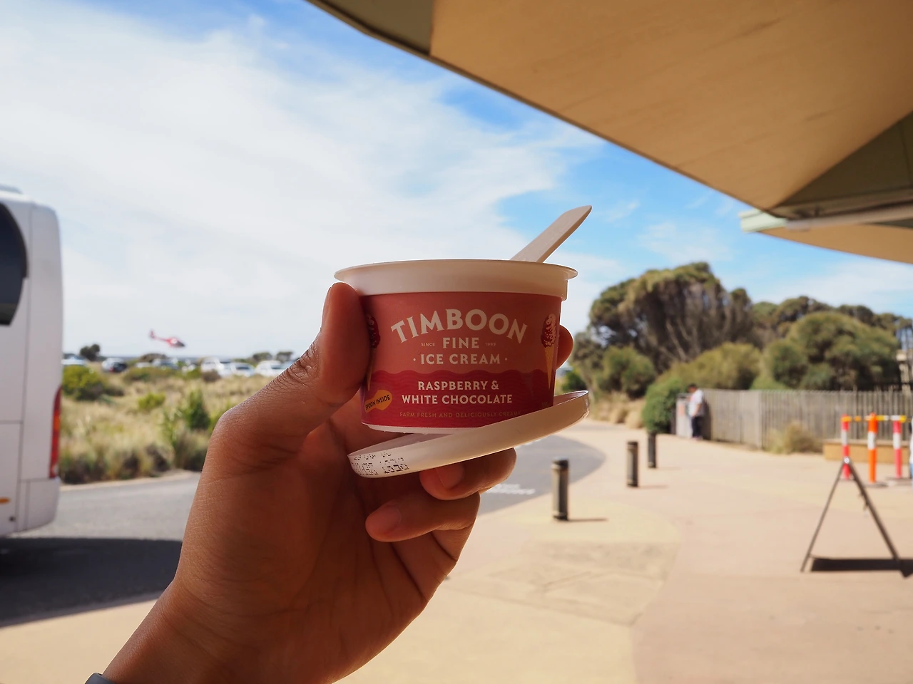 두 길을 끝까지 다녀왔는데도 시간이 조금 남았다. 이럴 줄 알았으면 육지길 끄트머리에서 해변까지 다녀올걸 그랬다. 이미 다시 가긴 늦었고, 매점에서 아이스크림이나 하나씩 사 먹기로 했다. 냉동실에 있는 조그만 컵아이스크림 두 개를 골랐다. 라즈베리 아이스크림에 화이트초콜릿이 콕콕 박혀있는 팀분(Timboon) 아이스크림이었는데, 기대보다 훨씬 맛있었다. 나중에 버스를 타고 지나가다 보니 그 아이스크림 공장이 바로 인근인 팀분 지역에 있었다. 오는 길에 소도 양도 많았으니 낙농업을 하는 농장에서 만들어내거나 바로 원재료를 수급해서 만들어내는 아이스크림이라고 짐작할 수 있었다. 역시 괜히 맛있는 게 아니었다. 지역 특산품을 바로 근방 관광지에서 팔 수 있어 장사수완이나 아이디어가 꽤 좋다는 생각이 들었다. 우리나라도 지방 여행을 다니면 농협 하나로마트에 꼭 들르는데, 유제품이나 육류가 그 지역 생산인 경우가 많기 때문이다. 서울에서 맛볼 수 없는 신선하고 맛있는 제품을 훨씬 저렴한 가격에 먹어볼 수 있는 데다, 지역 농민들에게도 큰 힘이 되지 않을까 싶다. 많은 사람들이 찾아주면 더 좋을 텐데.