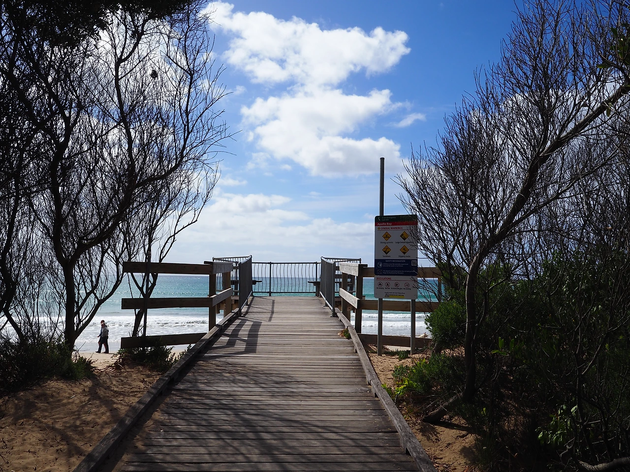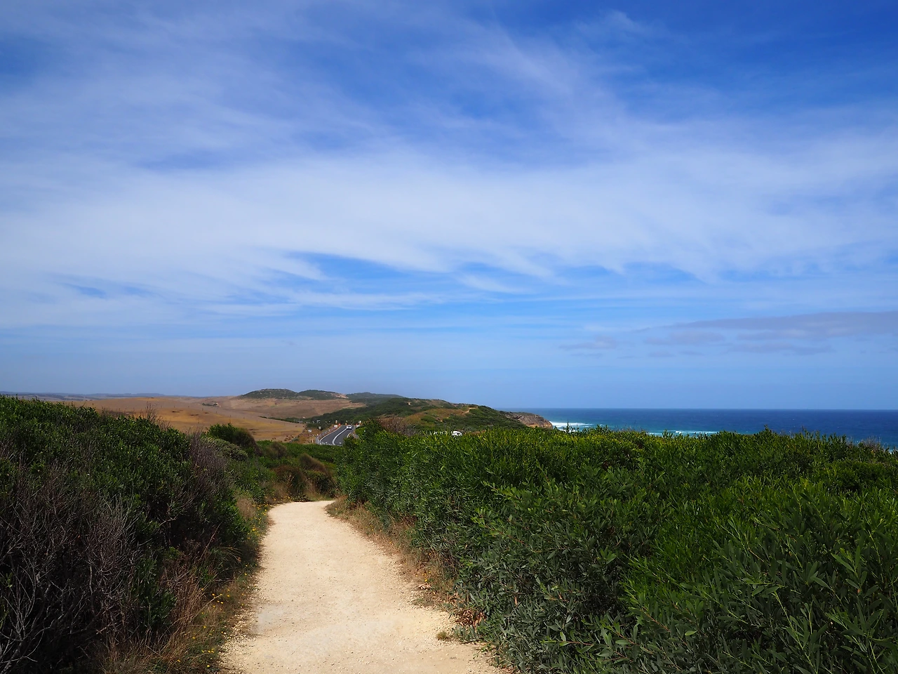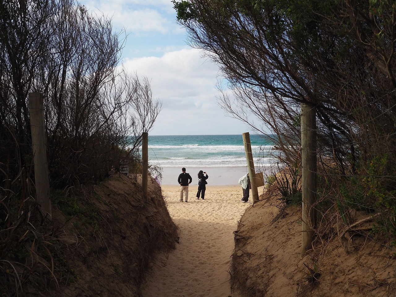차를 타고 이동하는 것이 다일뿐인데 시간은 참 잘 흘러간다. 점심식사를 할 시간이 다가왔다. 식사를 하기 위해 찾은 곳은 아폴로 베이(Apollo Bay Coastal Trail) 지역이다. 해변에 산책로가 있고 그 뒤로 상점가가 있는 곳이다. 오늘도 마찬가지로 도시락으로 샌드위치를 싸왔기 때문에 바로 해변가로 향했다. 모래사장에서 바다를 보니 가슴이 뻥 뚫리는 기분이다. 바람도 시원하고 햇볕은 따사롭다. 저쪽을 보니 숲길에서 톡 튀어나온 데크 위에 벤치가 있는 것이 보인다. 점심식사 장소로 딱이다. 해변에서 나와 숲길로 들어가 데크를 찾았다. 숲길 내부는 비포장 도로인데 1.5명이 지나갈만한 폭이다. 작은 나무와 큰 나무들이 엉켜서 촘촘하게 자라고 있다. 보통 거리를 둬야 더 잘 자라지 않나, 하는 생각이 들었지만 여기서 이런 식으로 자라는 식물들은 사람이 심은 것이 아니라 자생하는 경우가 많다.