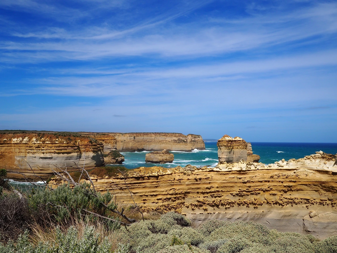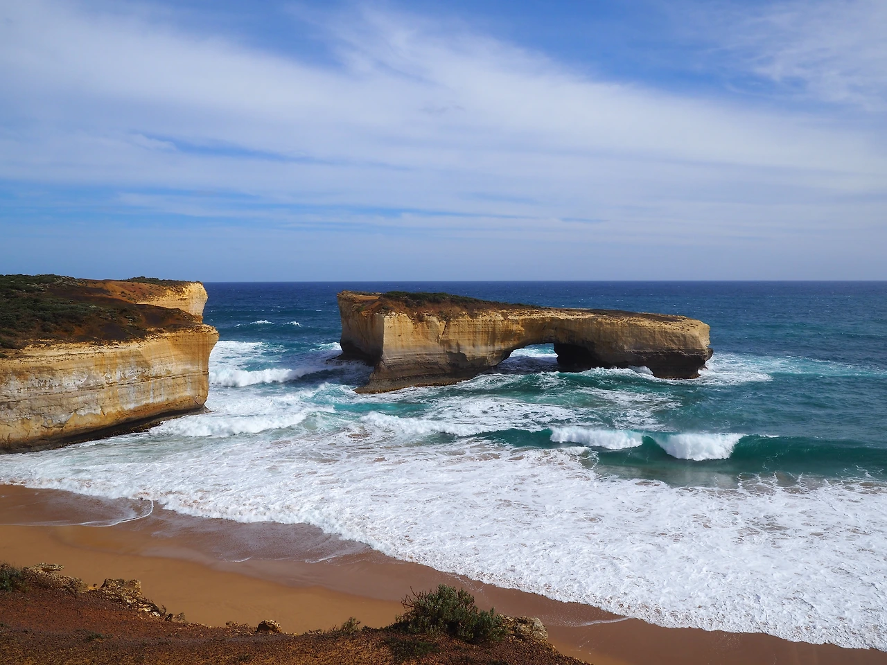 풍경은 아까 12 사도와 비슷하다. 깎아지른듯한 절벽 밑에 아름다운 해변가가 있다. 다만, 폭풍우로 일부 길이 유실되어 예전에는 해안가까지 내려갈 수 있었는데 지금은 전망대에서만 내려다보아야 한다. 톰과 에바 전망대를 갔다가 나오면 바로 옆에 레이저백(The Razorback) 전망대도 있다. 면도날로 잘라낸 것처럼 바위가 깎아지른 듯이 있어서 붙은 이름이다. 그리고 그 옆에는 아치 모양으로 바위의 일부가 잘려나간 곳을 볼 수 있는 전망대(Island Arch Lookout)도 있다. 거센 바람과 파도가 오랜 시간 동안 끊임없이 침식작용을 일으켜 만들어진 해안선이다. 과연 자연이 빚은 작품이라 할 수 있다.