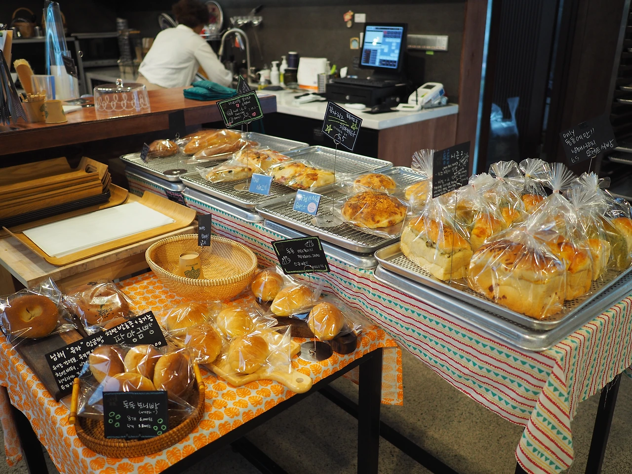 식사를 부지런히 마친 후에는 인터뷰를 하러 떠났다. 남해 바래길센터가 있는 앵강다숲에는 요가 선생님이 두 분 계시는데, 한 분은 지난번에 바래길 관련해서 얘기를 많이 나눠주신 문기 님이고, 오늘 만나는 분은 수민 님이다. 수민 님은 요가 강습을 하며 동고동락 협동조합이라는 단체에서 활동가로도 일하고 계신다. 상주 은모래비치 앞에 있는 마을빵집 동동에서 퇴근하는 수민 님을 만나 바로 옆에 새로 오픈했다는 마을책방으로 이동하여 이야기를 나눴다.