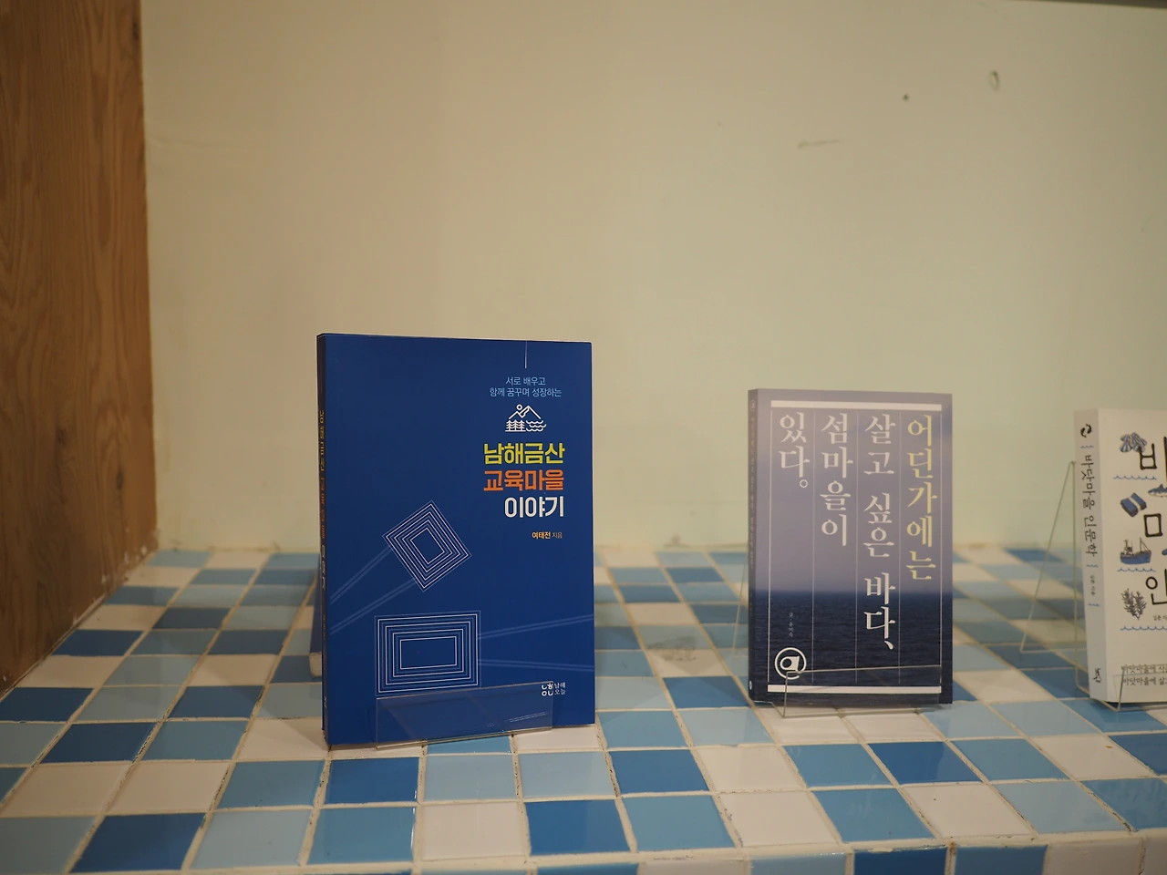 남해는 오픈빨이 잘 받는 동네는 아니다. 어딘가 새로운 장소가 생겼다고 해도 동네 주민들이 인스타그램을 열심히 보는 사람들이 아니기 때문이다. 신상 카페나 신상 빵집, 신상 책방의 소식들은 보통 동네 주민의 입을 통해서 알게 된다. 이 신상 마을책방의 소식도 그렇게 마을 주민인 수민 님을 통해 알게 되었다. 책방도 협동조합에서 운영하는 것으로, 조합의 활동가들이 각자의 재능을 살려 조합을 통해 다양한 활동들을 벌이고 있다. 책방에서 대안학교인 상주중학교의 초대 교장선생님을 지내신 여태전 선생님의 책과 다양한 남해 관련 서적, 소설, 인문학 서적들을 만나볼 수 있었다.