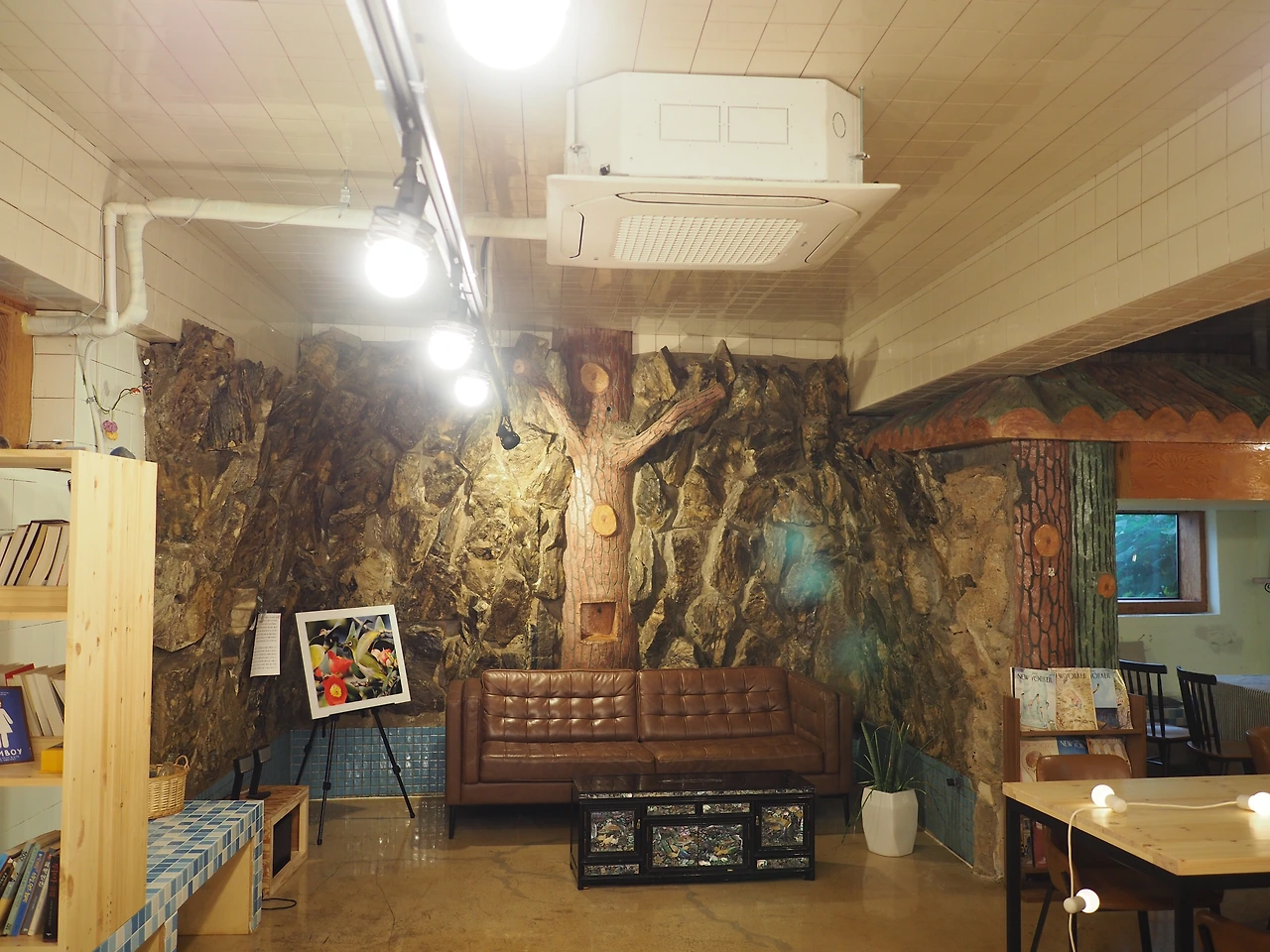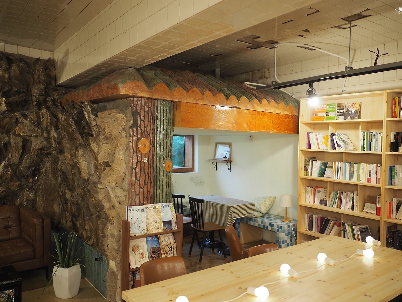그런데 인테리어가 희안하다. 알고 보니 옛날 목욕탕 건물을 개조해 만든 공간이란다. 원래는 마을빵집 동동이 이 자리에 있었는데, 빵집이 앞으로 이사하며 빈 자리에 마을책방을 만들었단다. 지난 주에 가오픈을 하고 다음 주에 정식 오픈을 하는 따끈따끈한 신상 책방이다. 남해에서 모임을 열고 싶거나, 남해 관련 책을 사고 싶은 사람들에게 추천해주고 싶은 장소다.