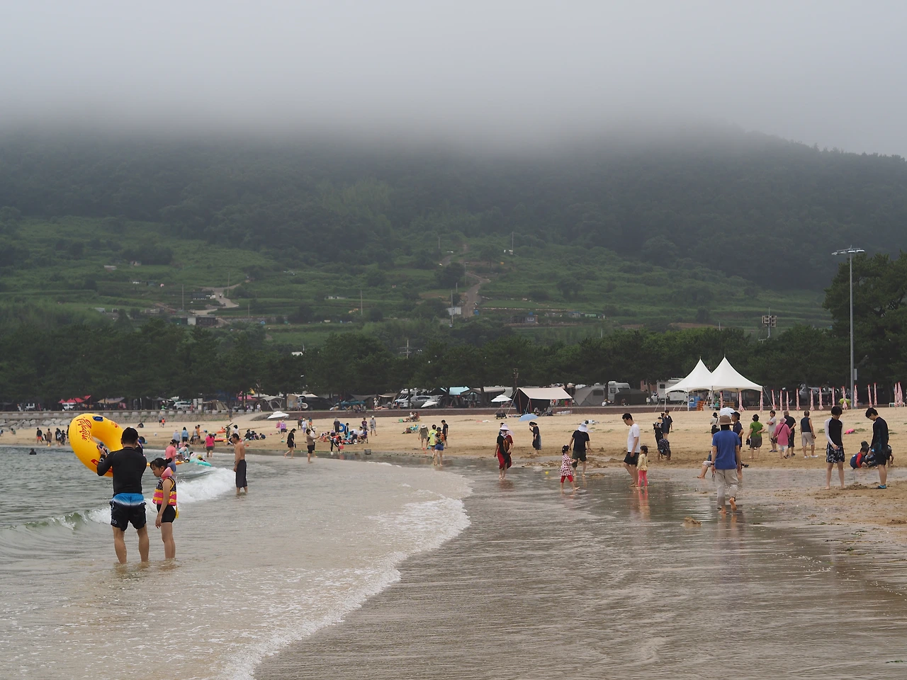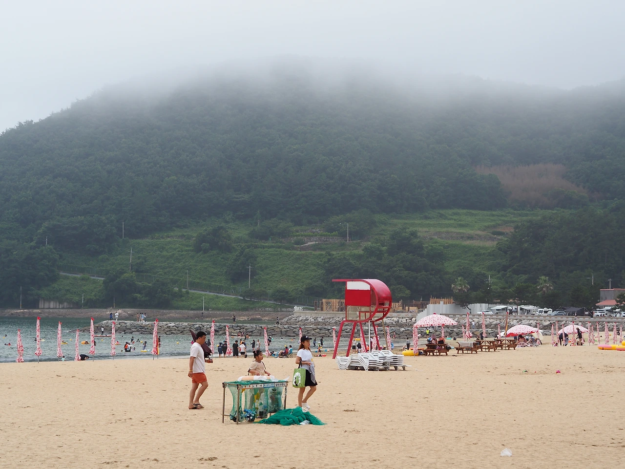 주말이라 유난히 해변에 사람이 많다. 해수욕장도 개장한 지 얼마 되지 않았다. 색색이 알록달록한 수영복을 입은 사람들이 상기되거나 지친 표정으로 해변을 걷고 있다. 누군가 앰프를 가져와 노래를 틀었는지 노랫소리가 크게 울린다. 파라솔 밑에는 사람들이 썬베드를 펼쳐놓고 누워있다. 해송 밑 평상마다 가족들이 편안한 자세로 앉아 뛰노는 아이들을 바라본다. 하늘은 흐리지만, 흐린 덕분에 더 즐기기 좋은, 남해의 여름이다.