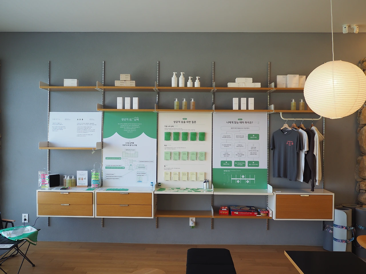 아직 오픈한 지 6개월 정도밖에 되지 않았지만, 소도읖에서는 벌써 다양한 브랜드와 협업을 하고 있다고 한다. 가까이는 근처의 식당이나 카페와 제휴를 맺고 할인서비스를 제공하고 있고, 멀리는 생활공작소와 같은 브랜드와 협업하여 브랜드를 체험할 수 있는 공간들을 만들어두었다. 인터뷰를 마치고 팝업으로 만들어둔 공간들을 잠시나마 체험하고 나왔다. 세련된 공간에서 힐링하며 일하고 싶은 디지털 노마드들이 좋아할 것 같은 장소다.