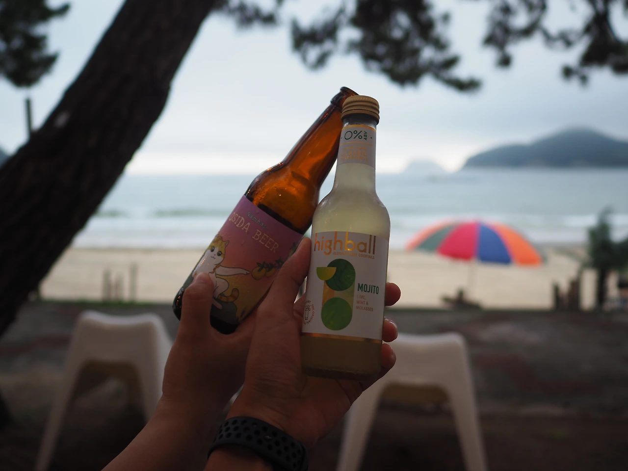 저녁이 다 되어서야 인터뷰를 마치고 송정 솔바람 해변으로 언니를 데리러 갔다. 송정하면, 또아이스(또 오아시스)다. 먼저 맥주를 시켜서 마시고 있는 언니 옆에 앉아 무알콜 하이볼을 주문했다. 한 병을 다 비우고 해변을 걷고 오고, 언니와 수다를 떨다가 해변을 또 걸었다. 유명하기야 상주 은모래비치가 더 유명하지만, 이상하게 송정 솔바람 해변에 더 마음이 간다. 남해에서 처음 만난 해변이라 그럴 수도 있고. 팜프라 식구들과 같이 와서 즐겼던 기억 때문일 수도 있다. 이런 생각을 하기 무섭게 저쪽에서 팜프라 식구들이 나타났다. 신기하게도 매번 올 때마다 마주친다. 만난 김에 지황 님, 유정 님, 린지 님과도 인터뷰 약속을 잡았다.