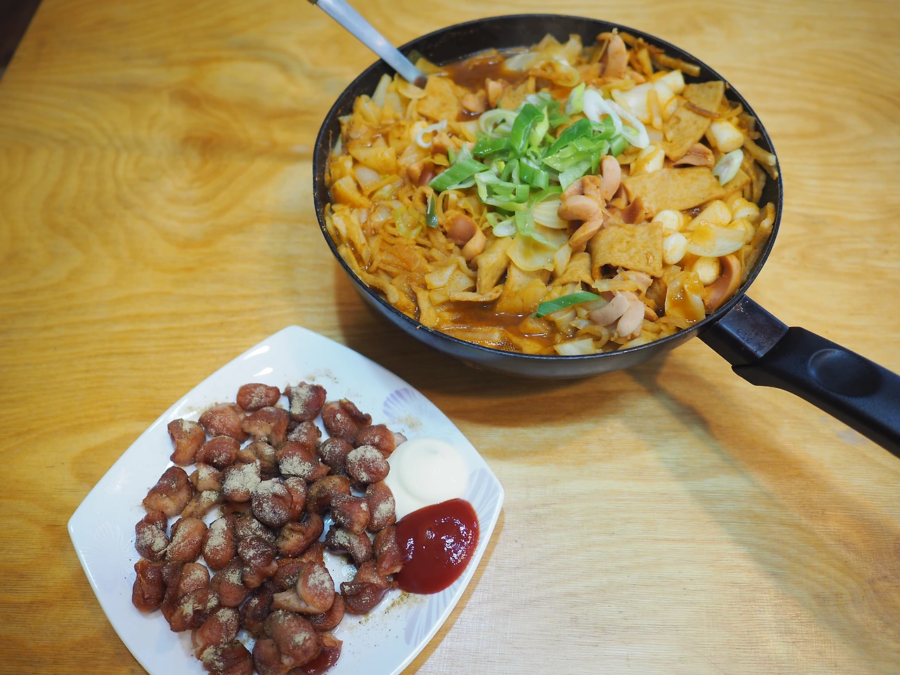 언니는 보리암에서 금산산장까지 가서 컵라면을 한 사발 들이키고 두모 입구까지 산길로 내려왔다고 한다. 내려오는 길도 작은 바위 큰 바위를 밟으며 내려와야 하는 험지라 한참 시간이 걸렸단다. 점심 식사로 떡볶이와 커리 없는 커리부어스트를 준비해 놓고 전화를 했더니 두모 입구 바로 앞이라고 해서, 바로 차로 태워와서 같이 식사를 했다. 반쯤 무동력으로 남해 여행을 하는 언니의 용기가 멋지다. 그저께는 노도 트래킹, 어제는 서핑, 오늘은 하이킹. 알찬 3박 4일의 여행이었다.