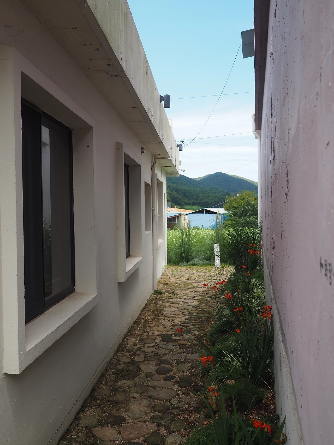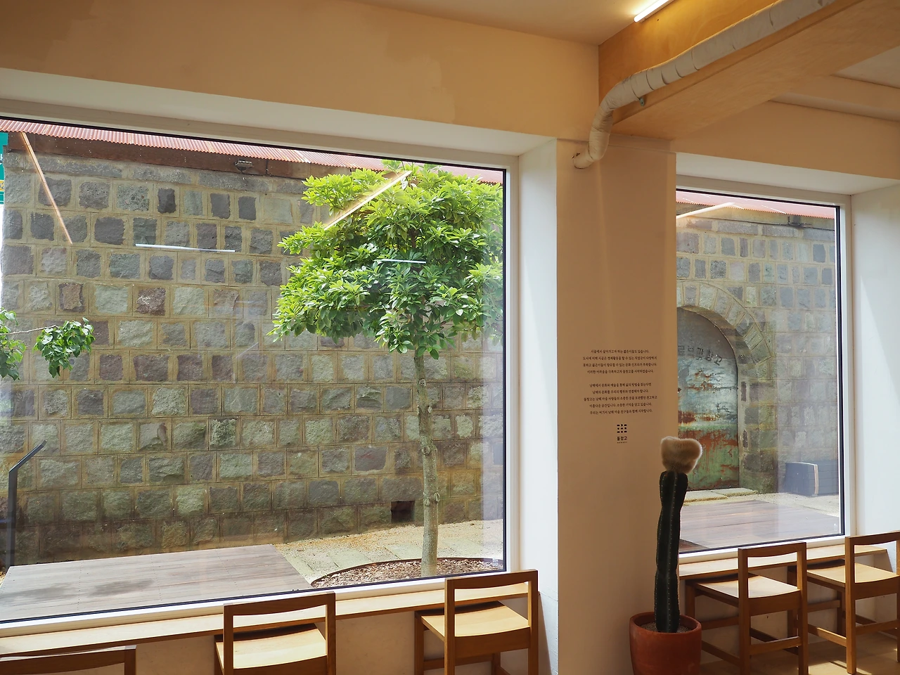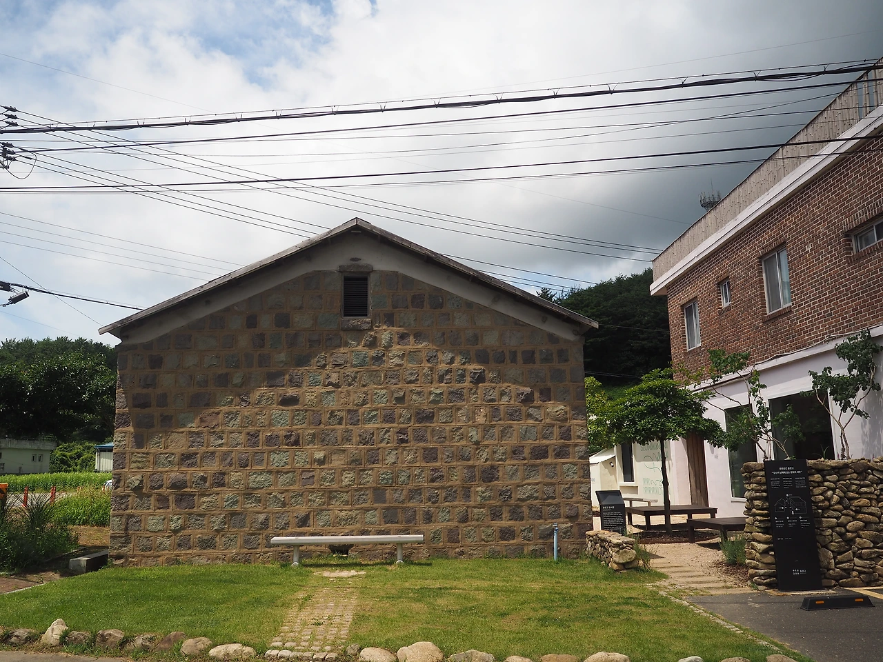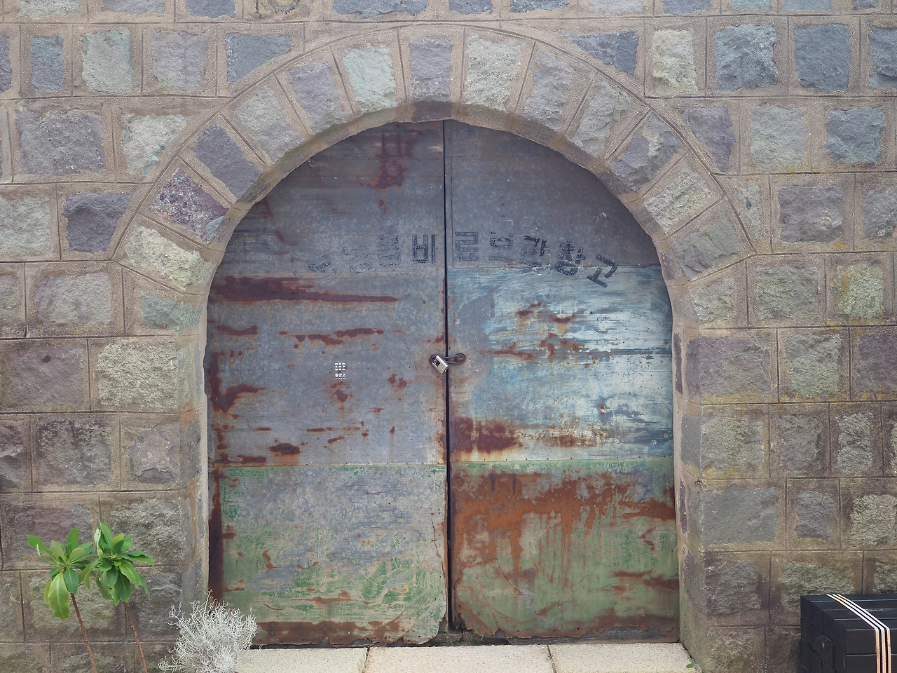 멀리서 와 준 동기에게 짧은 시간 안에 최대한 남해의 멋진 공간들을 많이 보여주고 싶었다. 자연스럽게 돌창고로 향했다. 시문마을에 있는 돌창고는 1967년에 지어진 양곡비료창고를 보존하여 전시장으로 재생한 공간이다. 바로 옆에는 농산물창고를 카페로, 그 뒤에 보건진료소 건물을 스튜디오로 재생한 공간이 있다. 남해대교가 1973년에 지어졌으니, 이 돌창고는 남해가 섬이던 시절 지어진 곳이다. 섬마을 주민들이 척박한 환경을 이겨내고 수확한 소중한 곡물을 보관하는 공간이었던 것이다.