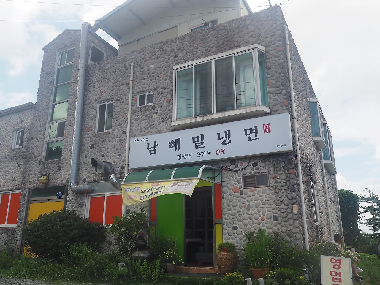 동기와는 뜨거운 여름날에 잘 어울리는, 밀냉면을 먹기로 했다. 이곳 역시 팜프라 식구들이 추천한 맛집이다. 냉면과 밀면의 단점을 보완하여 만들었다는 설명에 사장님의 자부심이 느껴진다. 온육수부터 중복에 맞게 한방 약재의 맛이 나더니, 밀냉면 국물에서도 차가운 삼계탕 같은 맛이 났다. 정신없이 한 그릇을 비우고 나니 곱빼기를 시킬걸 하고 뒤늦게 후회했다. 지나치게 찬 음식을 먹으면 배탈이 꼭 나던데, 여기는 배가 싸하게 아픈 느낌도 하나도 없다. 멀리서 와준 동기 덕분에 여러 모로 행복한 식사였다.