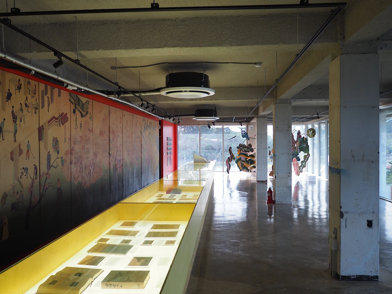 스튜디오 공간에는 남해군 용역으로 진행했던 프로젝트들에 대한 기록과 사진들, 남해와 근처 도시 학생들의 작품집을 발행한 서적들이 놓여있다. 학생들이 직접 쓴 시에 재치 있는 작품이 많아 즐겁게 읽었다. 돌창고의 지역에 대한 관심과 사랑이 중고등학교 학생들의 작품집으로 표현된 것처럼 느껴졌다. 경남 건축을 모아놓은 책도 발견했다. 처음 보는 건축물들도 많아, 시간이 나면 근처를 둘러봐야겠다는 생각을 했다.