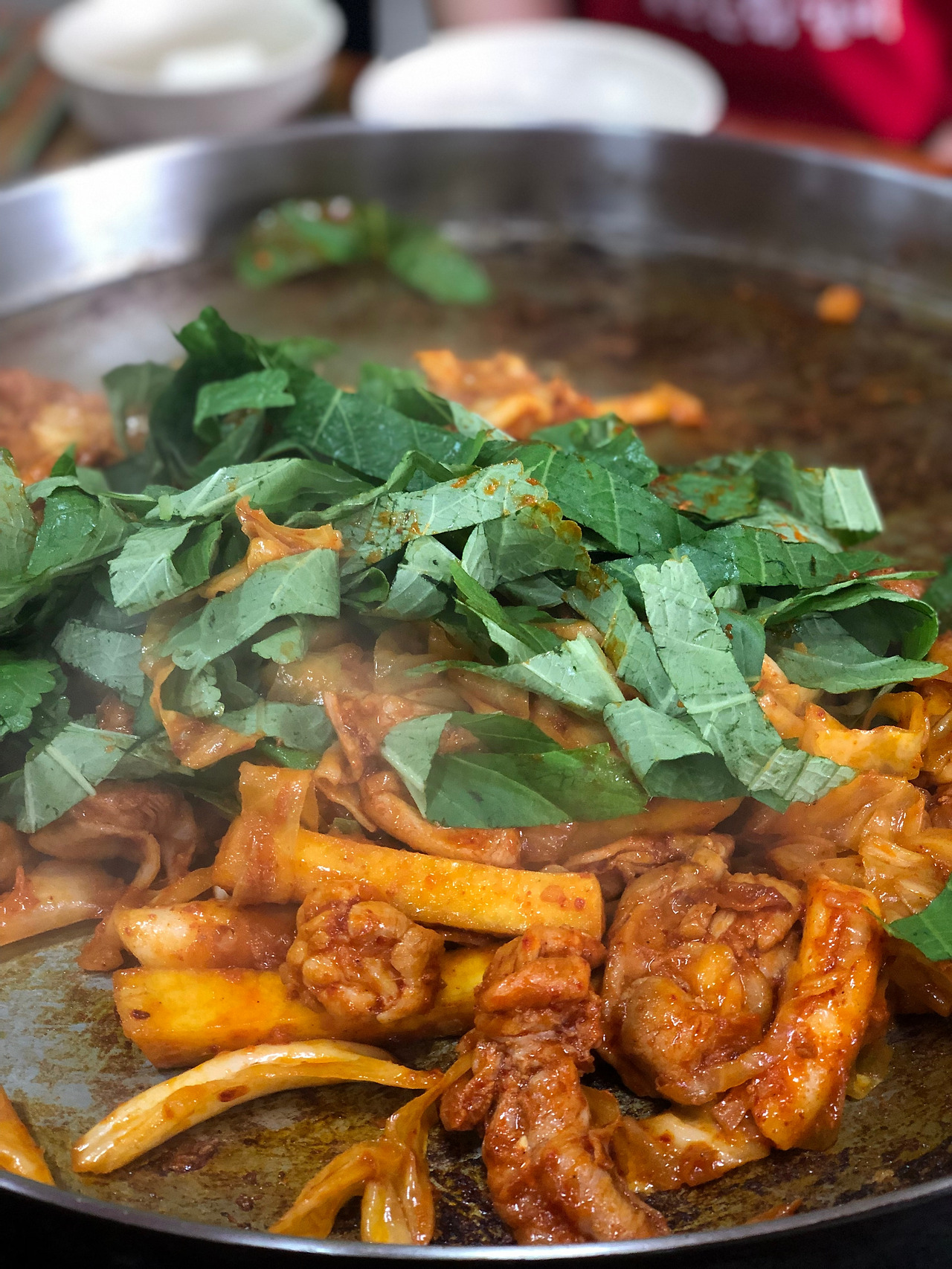 무거운 다리를 이끌고 다시 30분을 걸어 주차장으로 갔다. 집까지 찍어보니 올 땐 2시간 걸렸던 길이 3시간으로 늘어나 있었다. 일단 밥부터 먹고 생각하자. 닭갈비의 도시에 왔으면 닭갈비를 먹어야 된다. 미리 식당에 전화해 주문해놓은 뒤 허기진 배를 붙잡고 달렸다. 허기가 사리를 불렀다. 우동 사리 치즈 사리에 막국수까지 주문해놓고 결국 음식에 점령당한 상태로 퇴장했다. 자전거 타는 사람들의 맛집은 믿지 말라는 말이 있던데, 러너의 맛집도 신뢰성이 떨어지긴 마찬가지일 것 같다. 10km를 달린 후에 먹는 닭갈비는 너무 맛있었다.