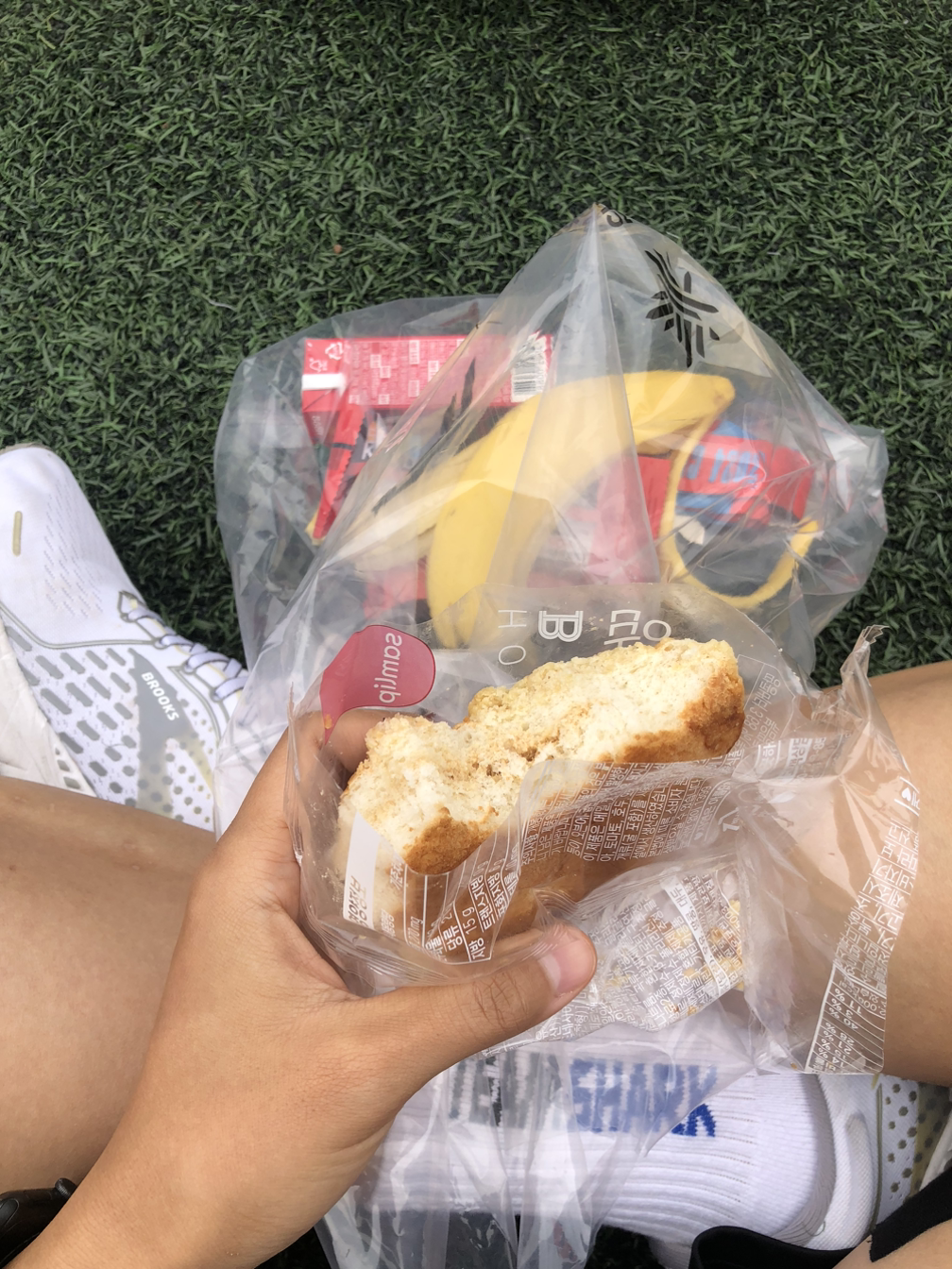 끝날 것 같지 않았던 10km의 결승선이 보였다. 바닥에 그어진 검은 색 선을 넘으며 삐빅 소리가 쉴새없이 울렸다. 한 시간 내내 달리던 몸의 속도를 한껏 낮췄다. 지친 성동일 아저씨처럼 걸어 페트병에 든 물을 받아 보도블럭 턱에 걸터앉아서 한번에 다 마셨다. 정신이 드는 기분이었다. 자리에서 일어나 결승선 라인을 배경으로 사진을 한 장 찍었다. 얼굴이 벌겋게 달아올라 있었다. 언니가 들어오려면 좀 더 기다려야할 것 같아, 행사장으로 발걸음을 옮겼다. 행사장이 어디인지는 모르지만 인파의 흐름을 따라 함께 흘렀다. 줄을 서서 바나나와 빵과 시리얼바와 주스와 메달을 받고 인조잔디밭에 앉아 하나하나 까먹었다. 다 먹고 나니 다시 머리가 반짝해지는 기분이다. 언니도 결승선을 통과했다는 문자가 왔다.