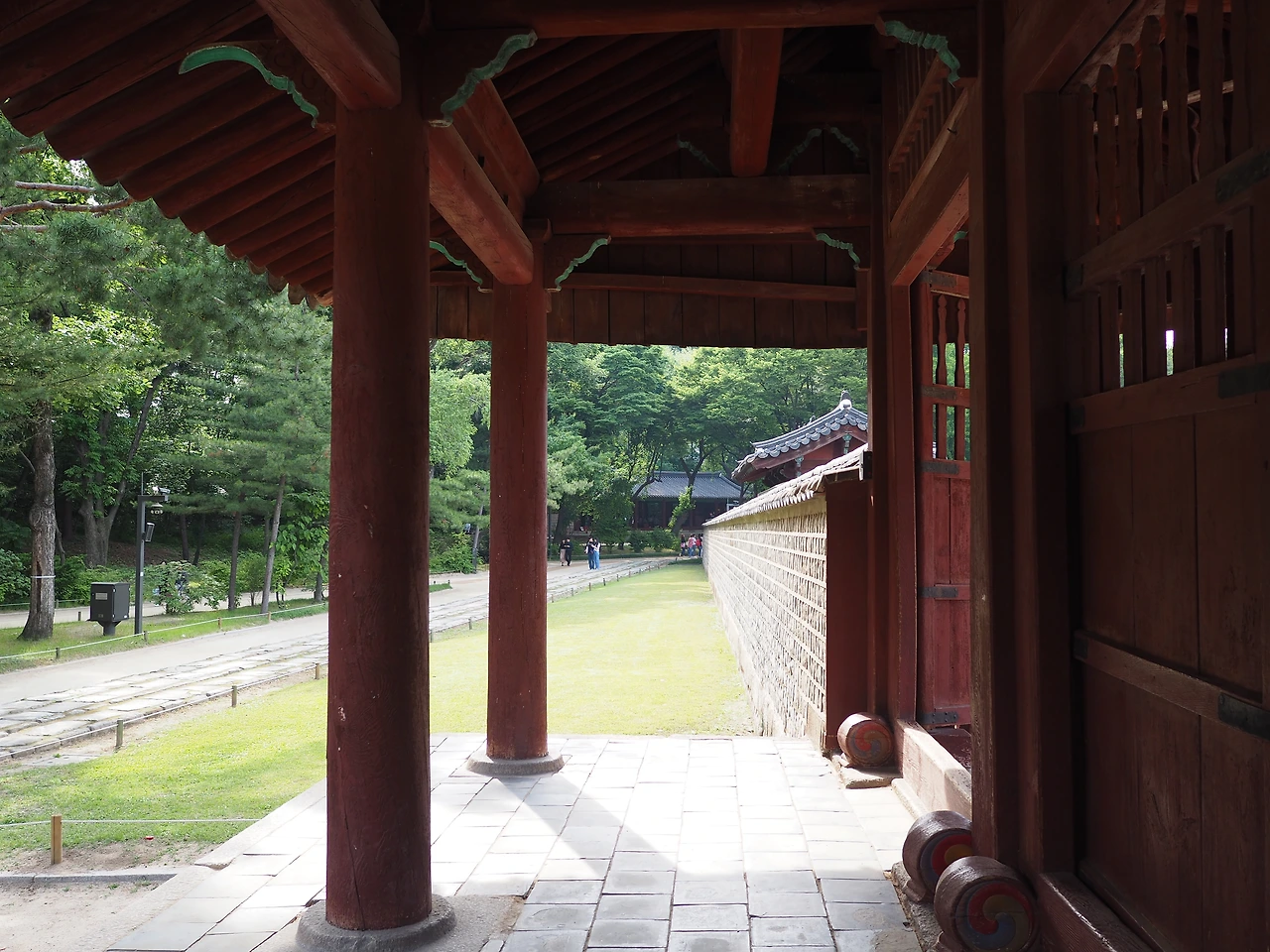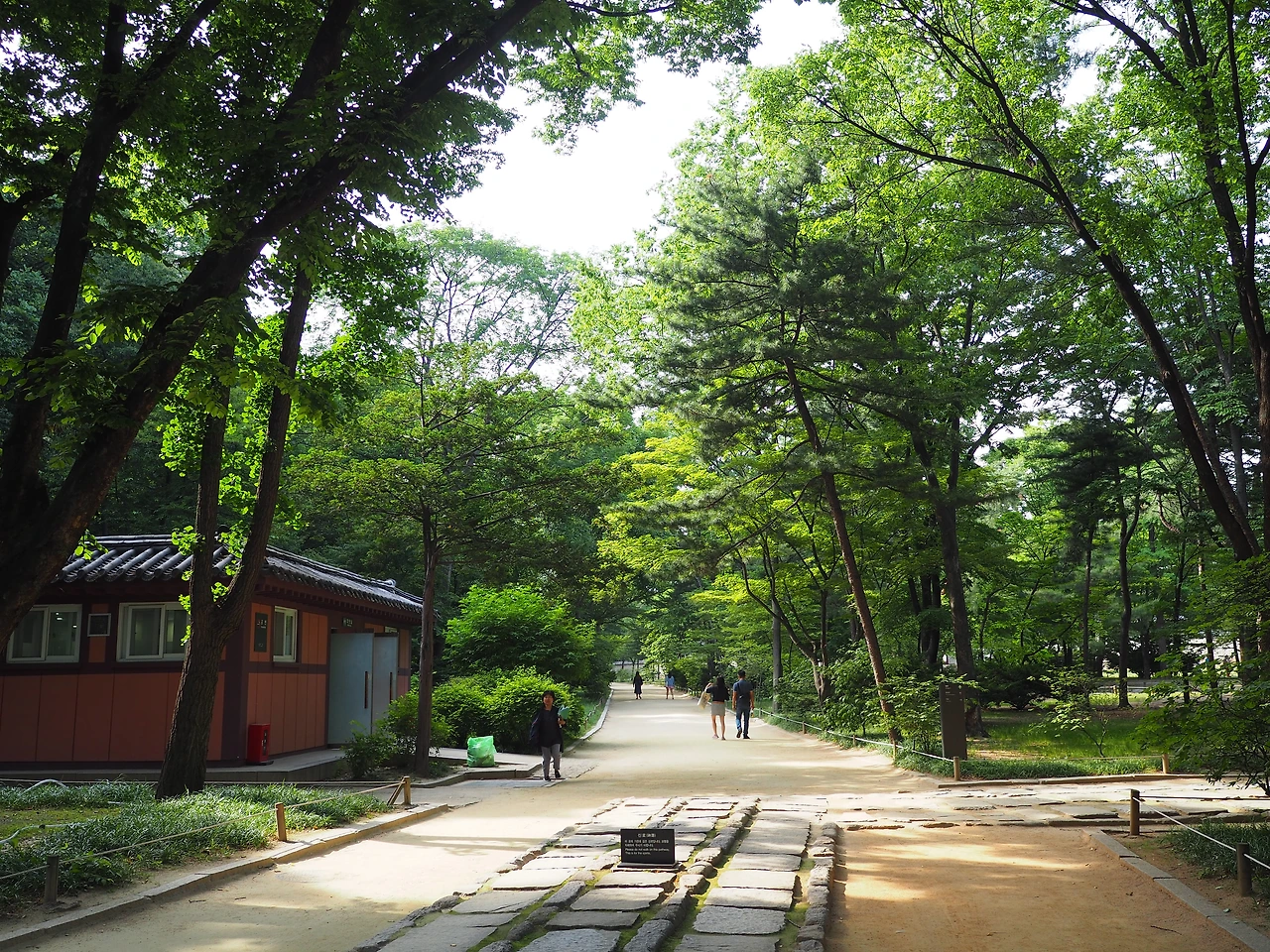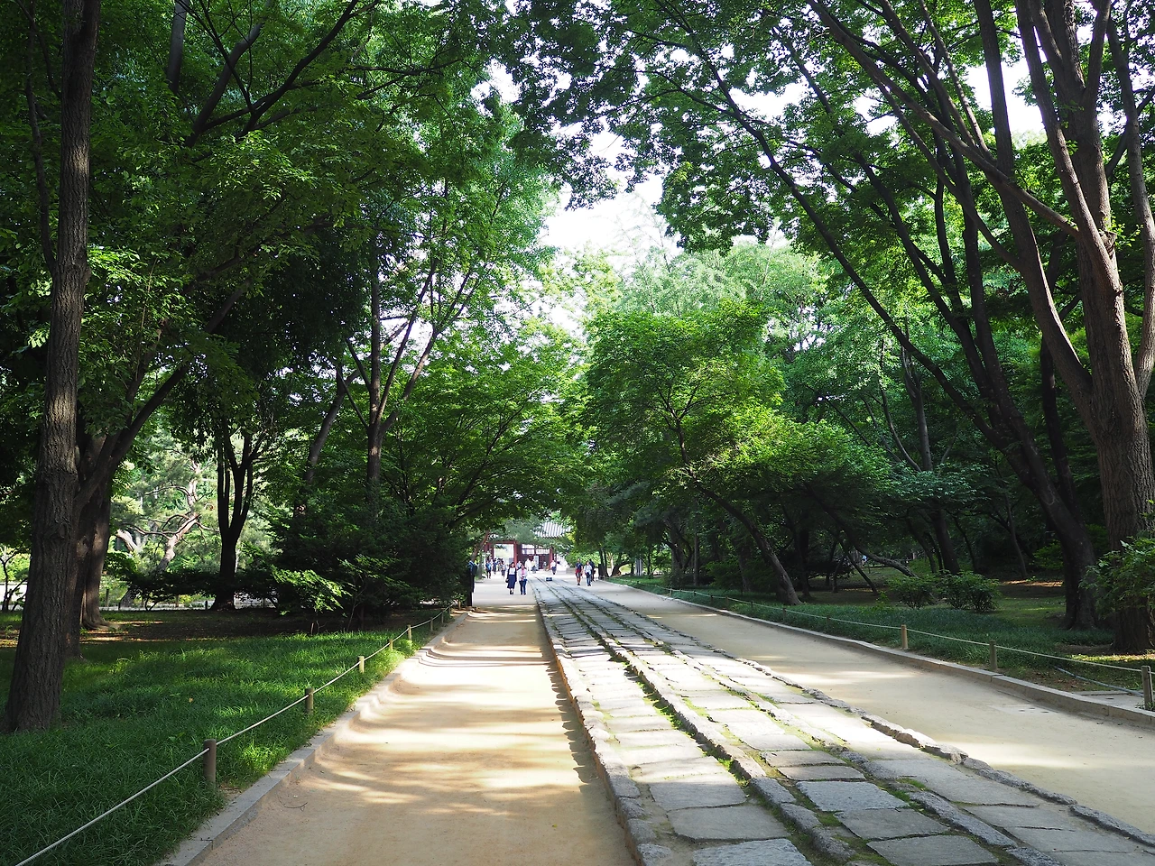 입장료는 단돈 천 원. 토요일에는 자유관람을 하고, 나머지 날에는 문화해설사를 동반한 가이드 투어만 가능하다고 한다. 냉큼 표를 끊어 들어가니 초록의 나무 사이로 세 줄로 깔린 돌길이 보인다. 종묘제례 의식을 위해 만든 신로다. 남북 방향으로 길게 놓여 있는 신로의 가운데 길은 신주와 향, 축이 지나가는 신로, 동측 길은 왕이 다니는 어로, 서측 길은 세자가 다니는 세자로이다. 가운데 신로가 양쪽보다 조금 더 높이 돋아 있다.