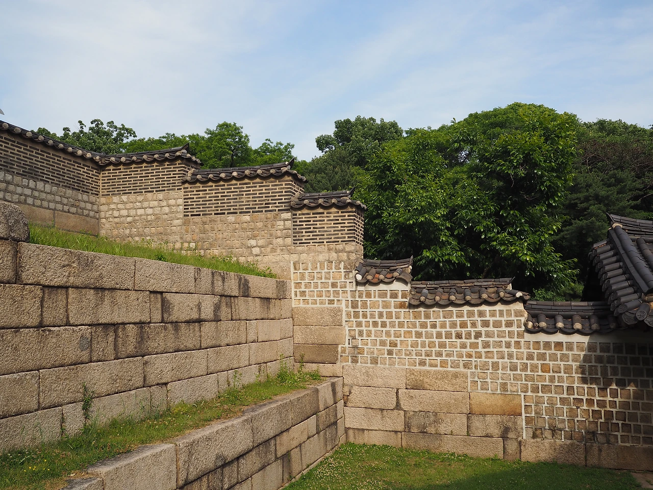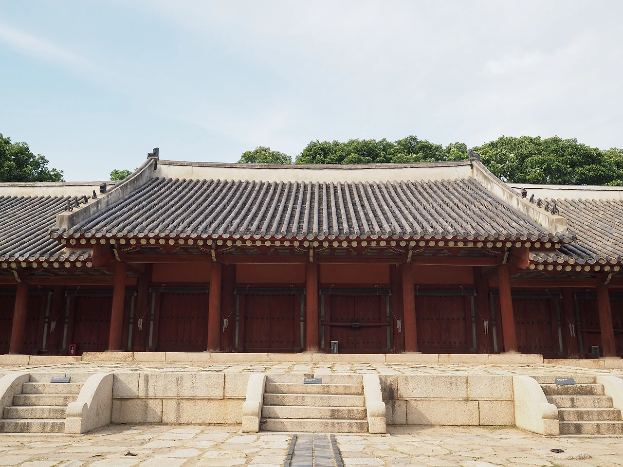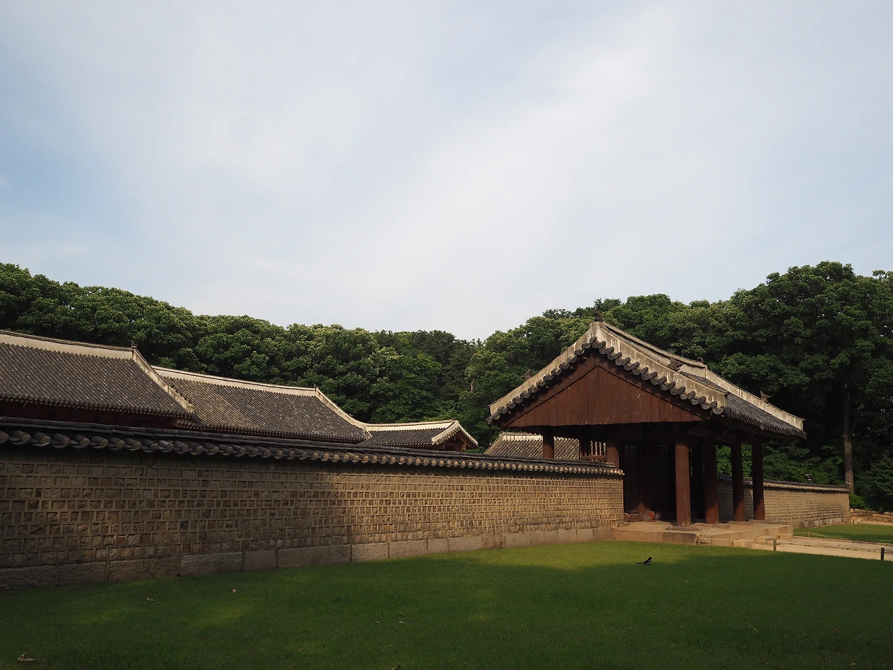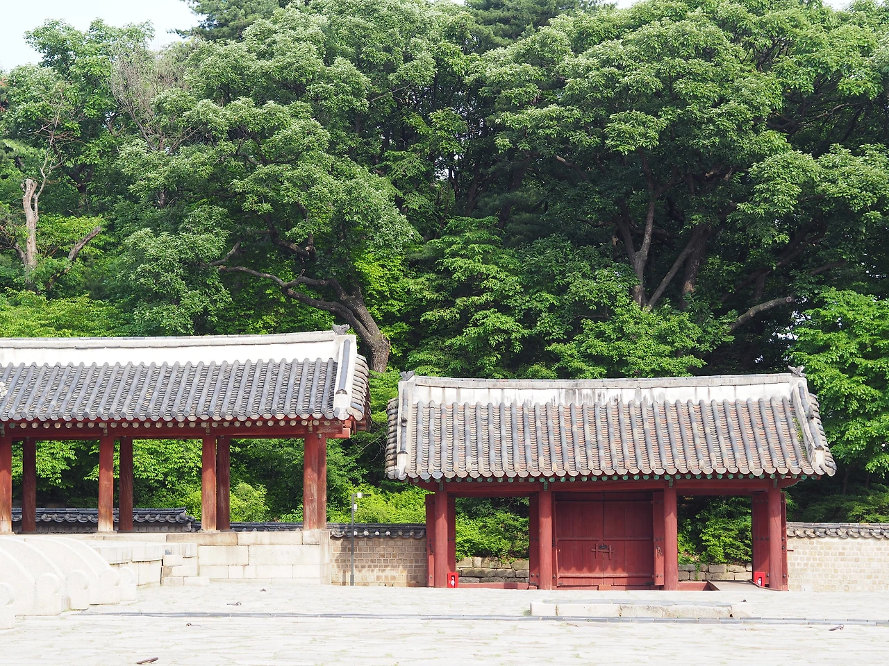입장료는 단돈 천 원. 토요일에는 자유관람을 하고, 나머지 날에는 문화해설사를 동반한 가이드 투어만 가능하다고 한다. 냉큼 표를 끊어 들어가니 초록의 나무 사이로 세 줄로 깔린 돌길이 보인다. 종묘제례 의식을 위해 만든 신로다. 남북 방향으로 길게 놓여 있는 신로의 가운데 길은 신주와 향, 축이 지나가는 신로, 동측 길은 왕이 다니는 어로, 서측 길은 세자가 다니는 세자로이다. 가운데 신로가 양쪽보다 조금 더 높이 돋아 있다.
